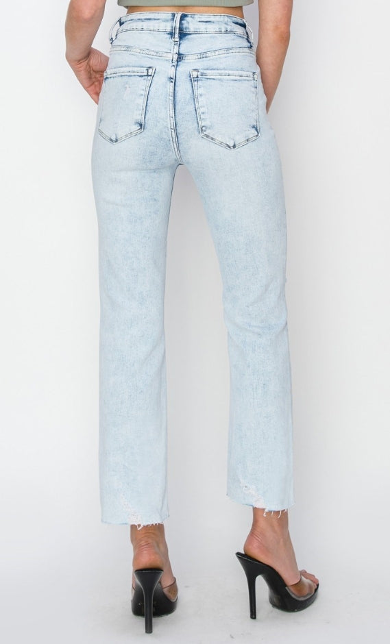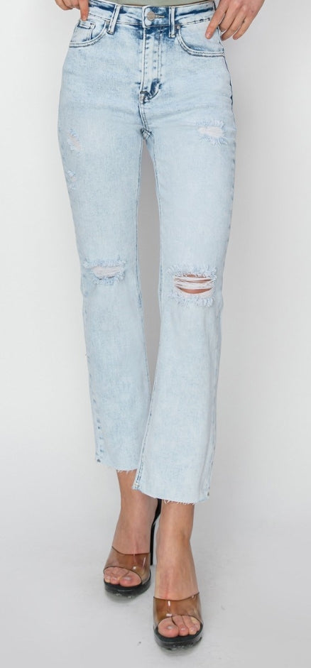 Risen Acid Light - High Rise Knee Distressed Slim Straight Jeans