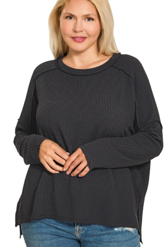 Black Ribbed Long Sleeve