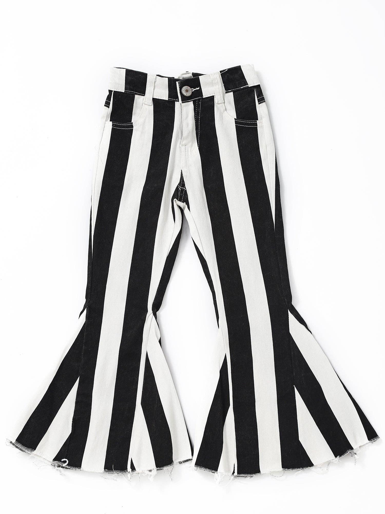 Black White Stripe Toddler Girls Halloween Bell Bottom Jeans A stylish, long-lasting addition to your wardrobe. Enjoy wear-ready comfort and convenience with a quick delivery time.