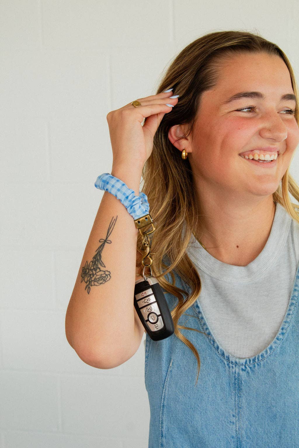 This keychain is part of our Andi X Kaitlyn & Faith Collection! Andi keychains are the cutest you'll find. This keychain is the cutest blue gingham pattern printed on a linen material, and is absolutely adorable. This one will be perfect to wear all year round! You can't go wrong with it-it'll look cute with all your outfits. Get this to hold all your necessities and keep your pockets and hands free while adding a cute and stylish flair.