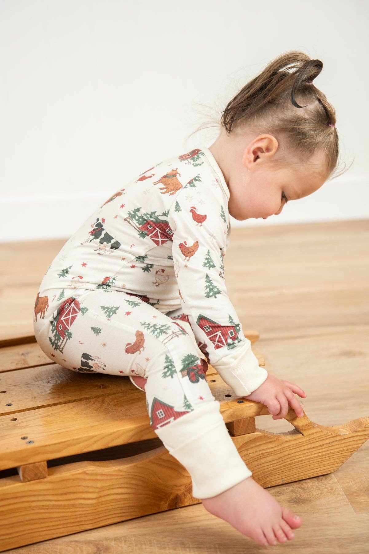 Keep your little one snug and merry this holiday season with our Christmas Barns & Animals Baby Zippy. This buttery soft, lightweight poly-lycra one-piece features fold-over mittens and foot cuffs to keep tiny hands and toes cozy. Adorned with festive barns and cheerful animals, it’s perfect for matching the whole family in adorable Christmas pajamas. Celebrate the magic of the holidays in cozy comfort and playful style!