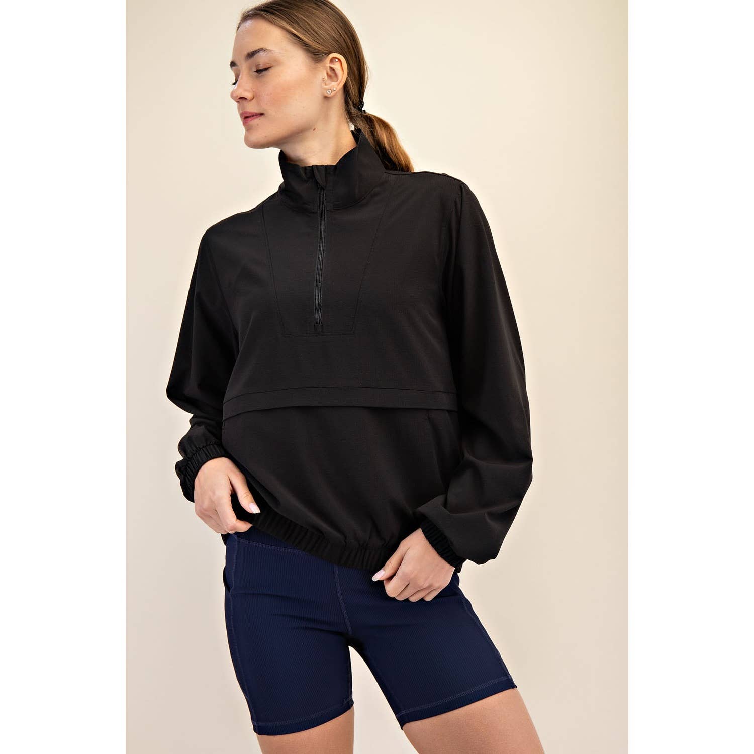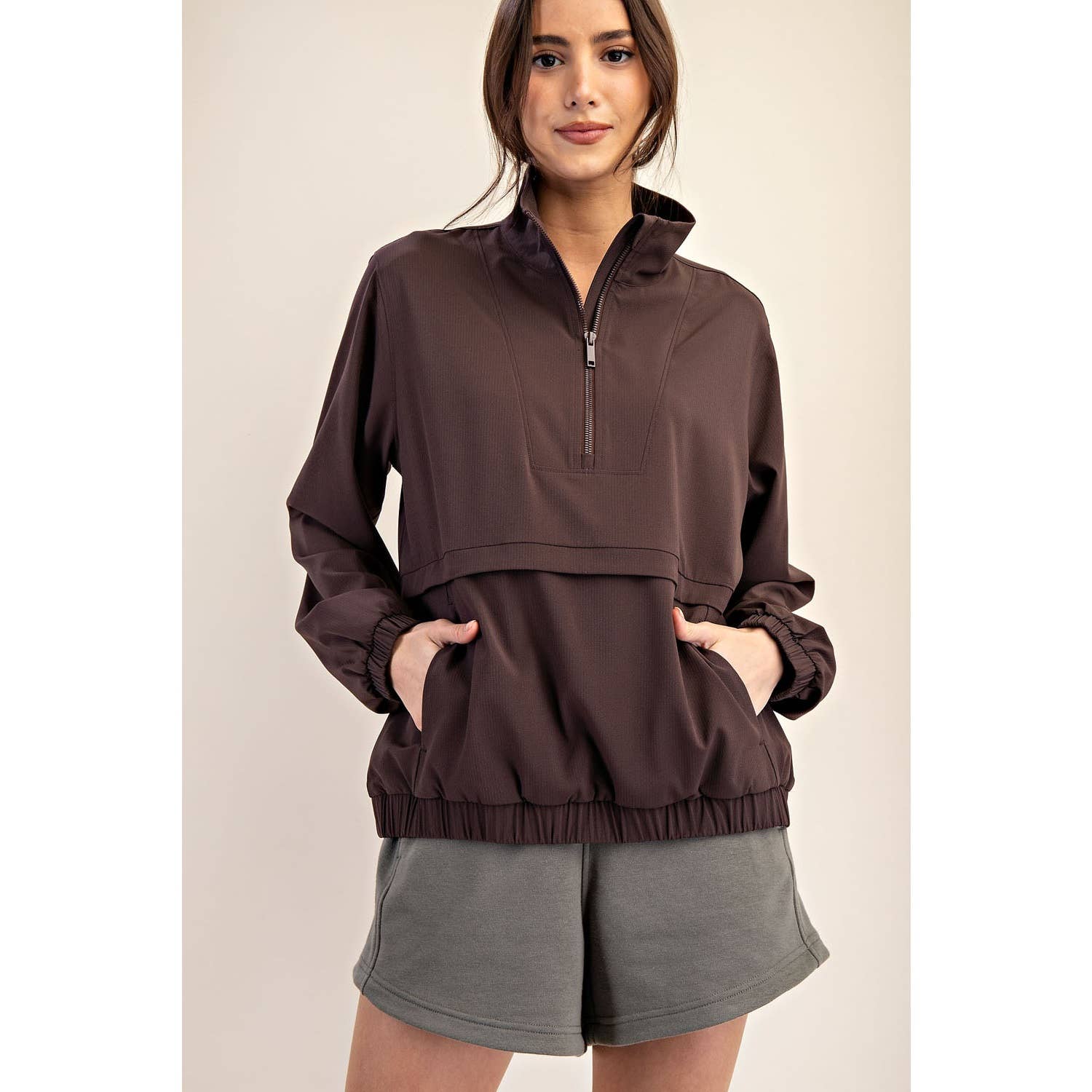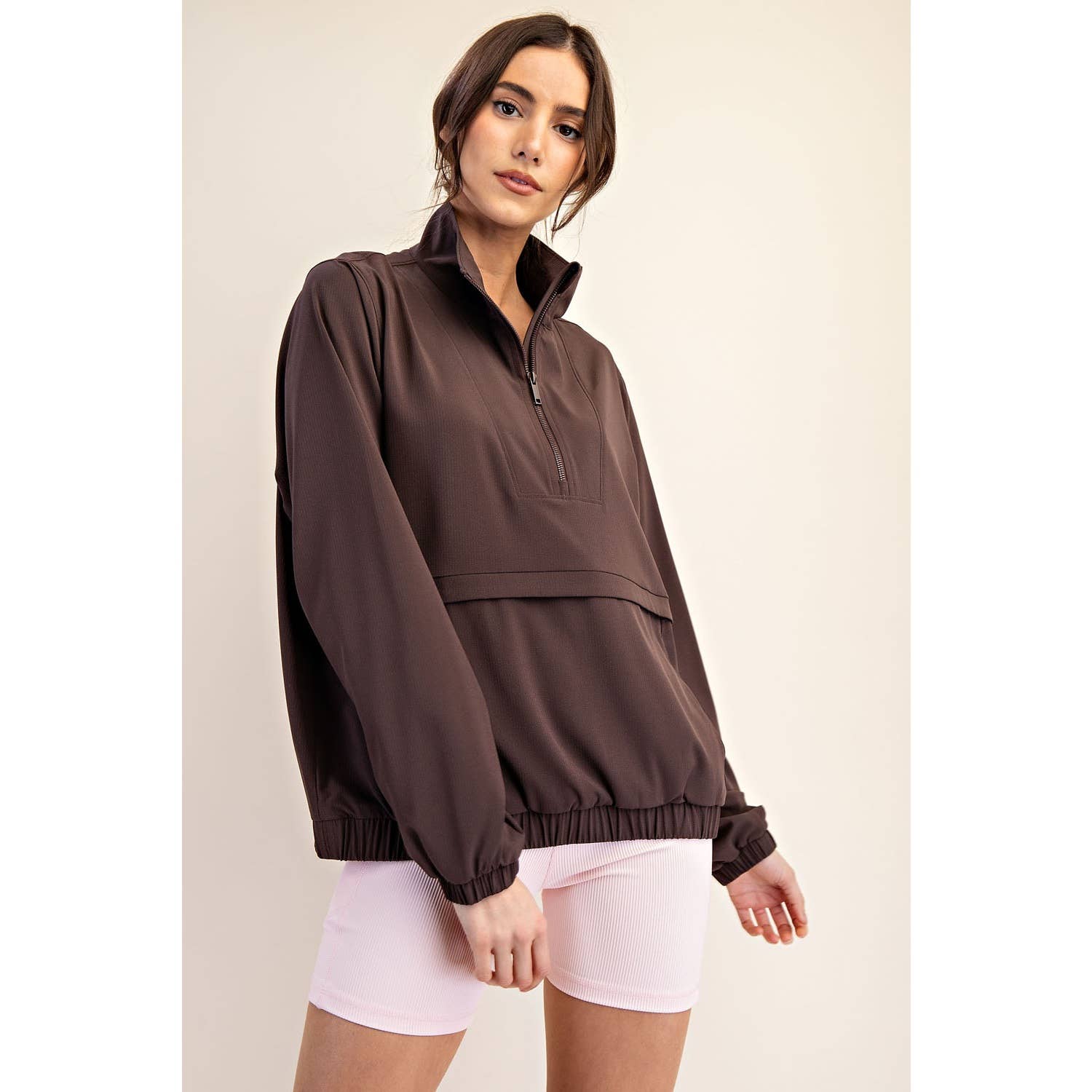 A long sleeve active jacket made from luxurious crinkle woven fabric, featuring a stylish quarter zip. Lightweight and versatile, it brings a touch of elegance to your activewear.