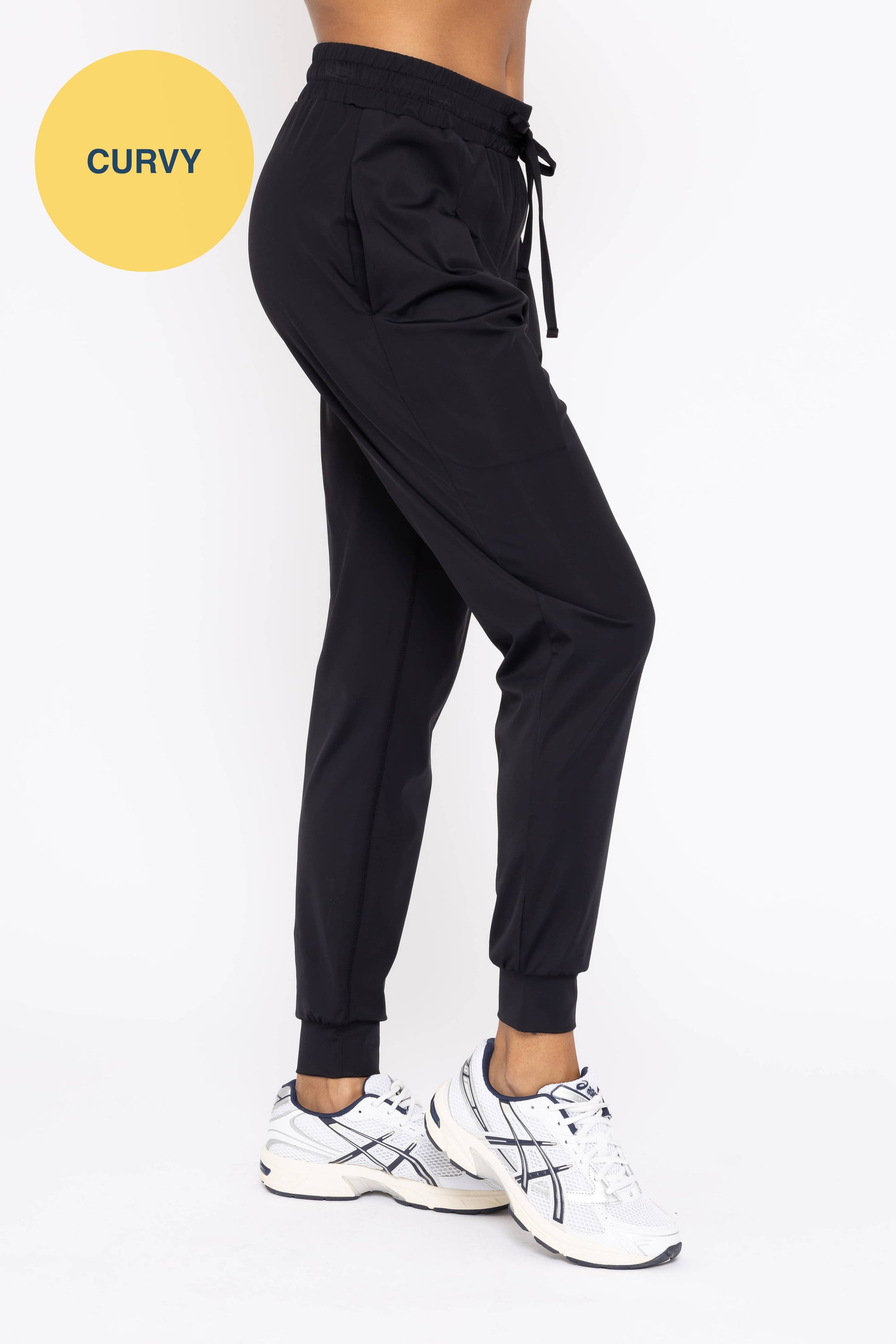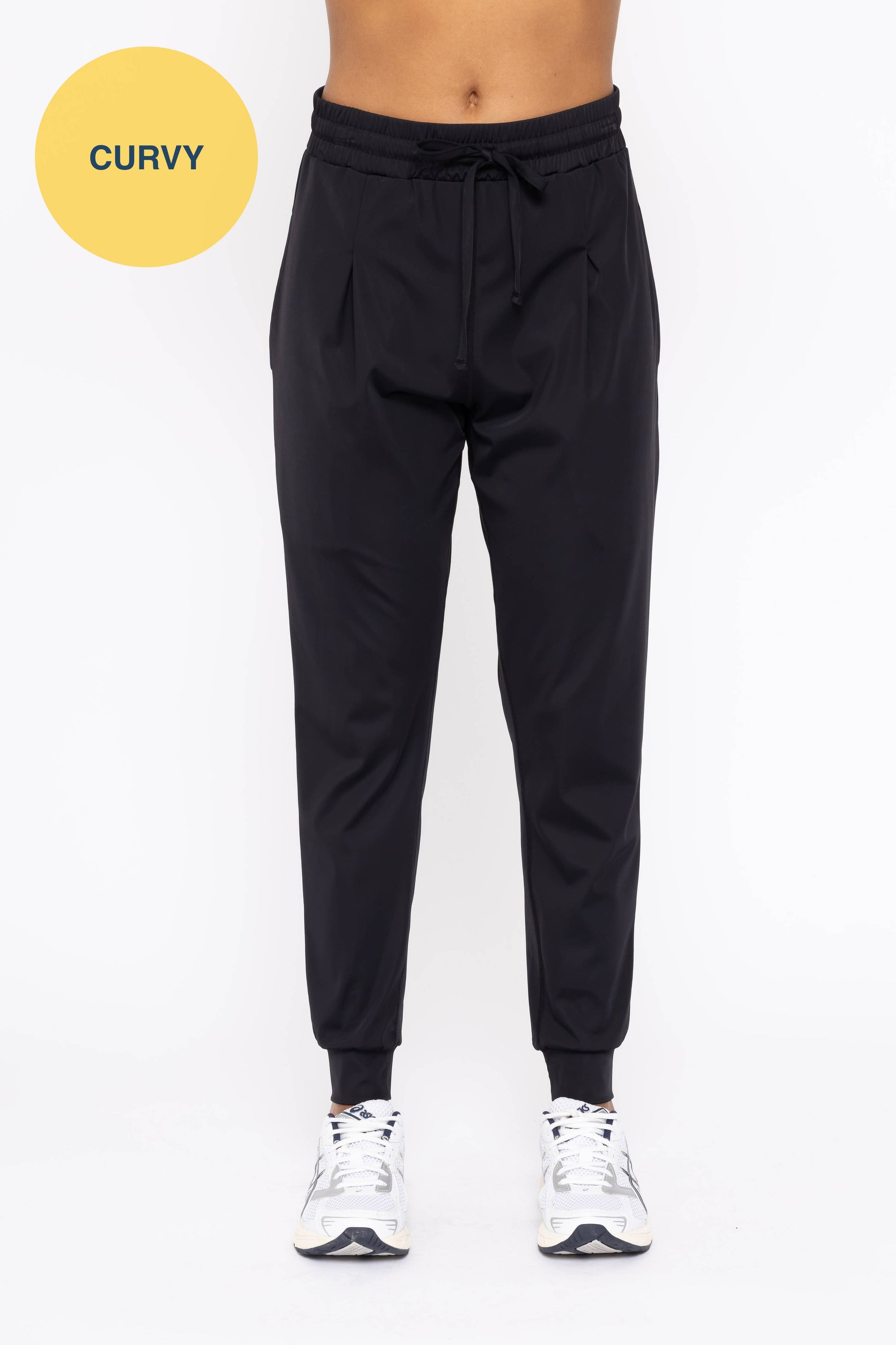 These silky jogger pants feature an adjustable drawstring waistband, inseam pockets, front pleats, and cuffed hems. Wear them while working from home or running errands.