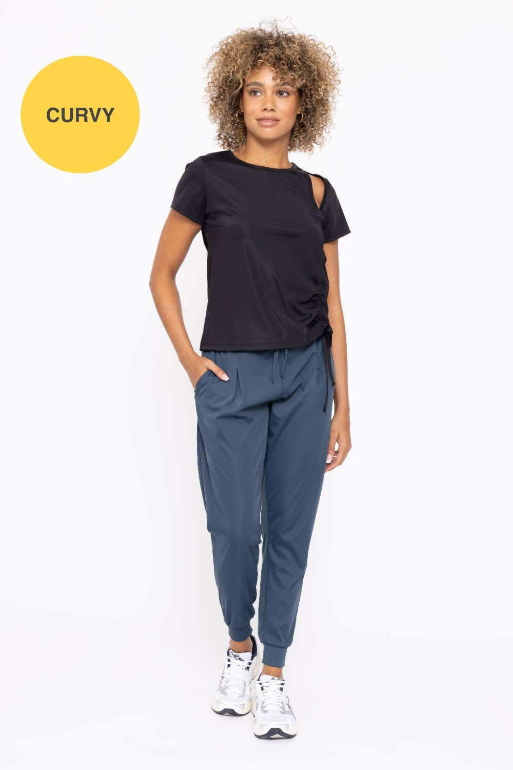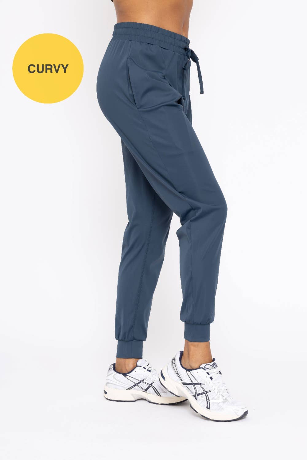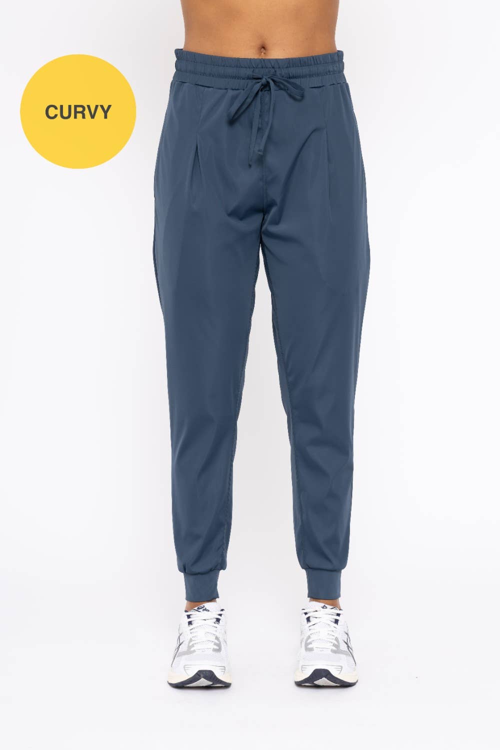 CURVY Solid Pleated Front Joggers: MIDNIGHT NAVY