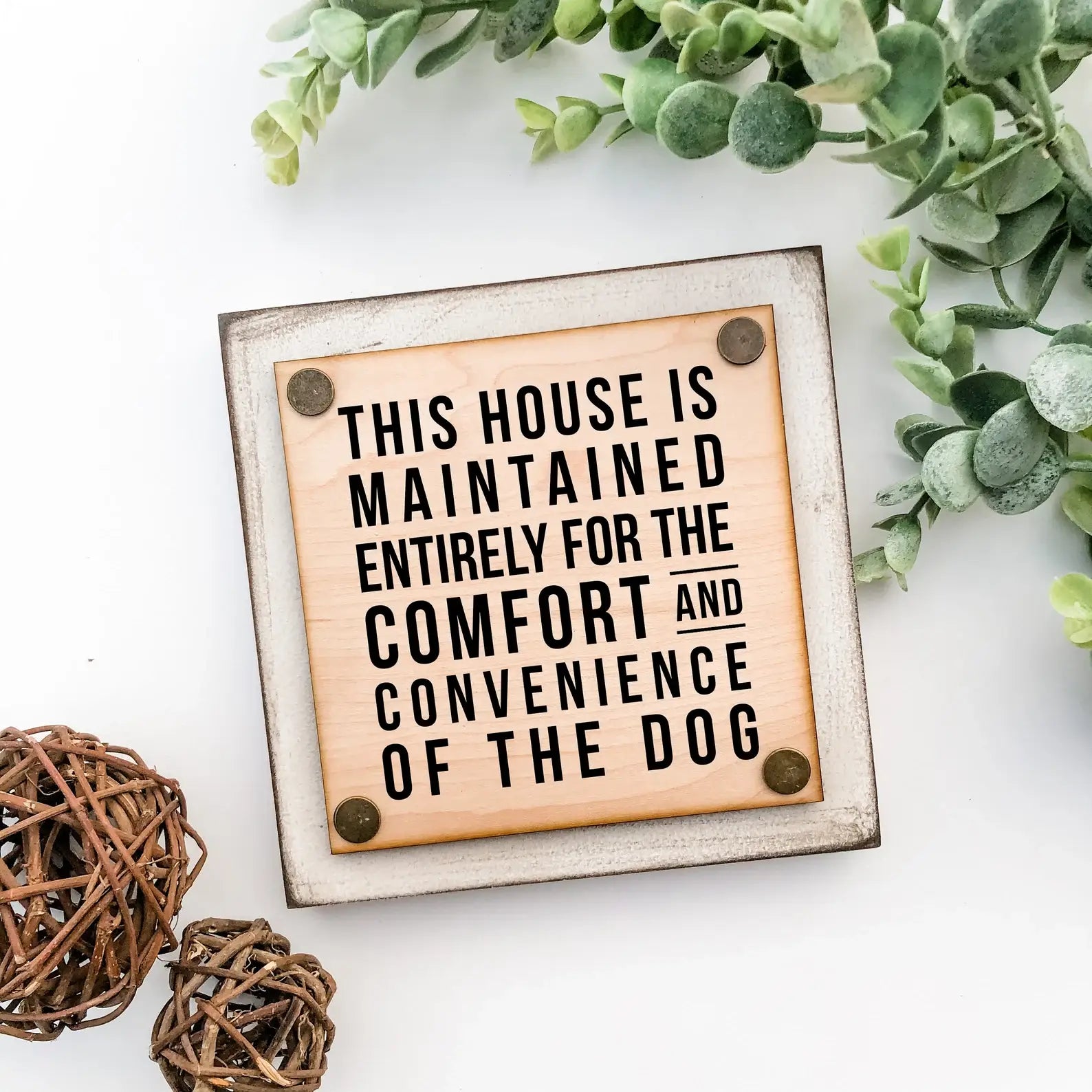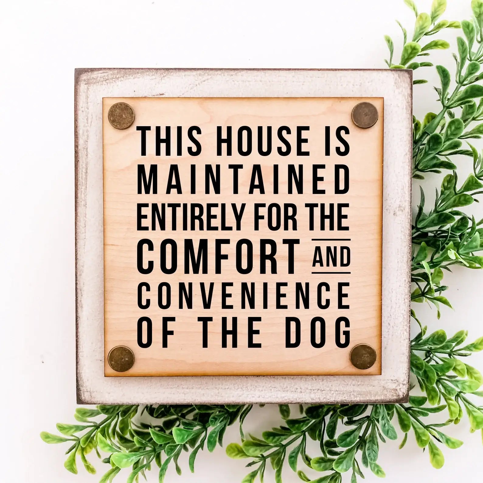 - Size: approximately 6"x6" for all styles. The inner wood piece is nailed on in the 4 corners with the brass nails to give each sign a unique, multi-level look!