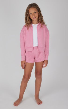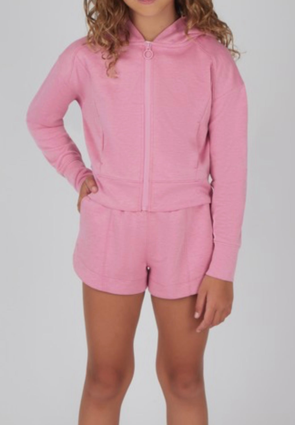 Keep their looks perfectly coordinated! Girls Scuba Front Zip Jacket with Pockets, Rib Fitted Tank, and Scuba Short Set-3 PC SET.