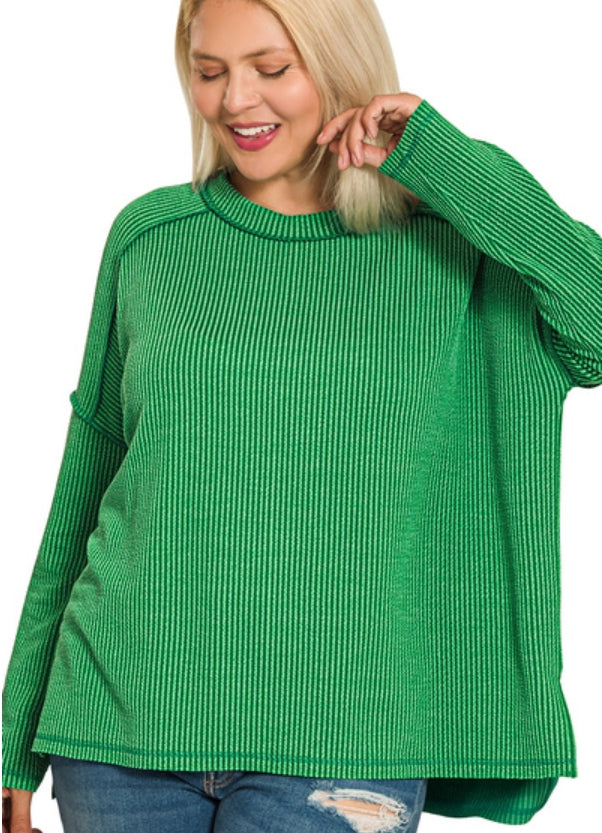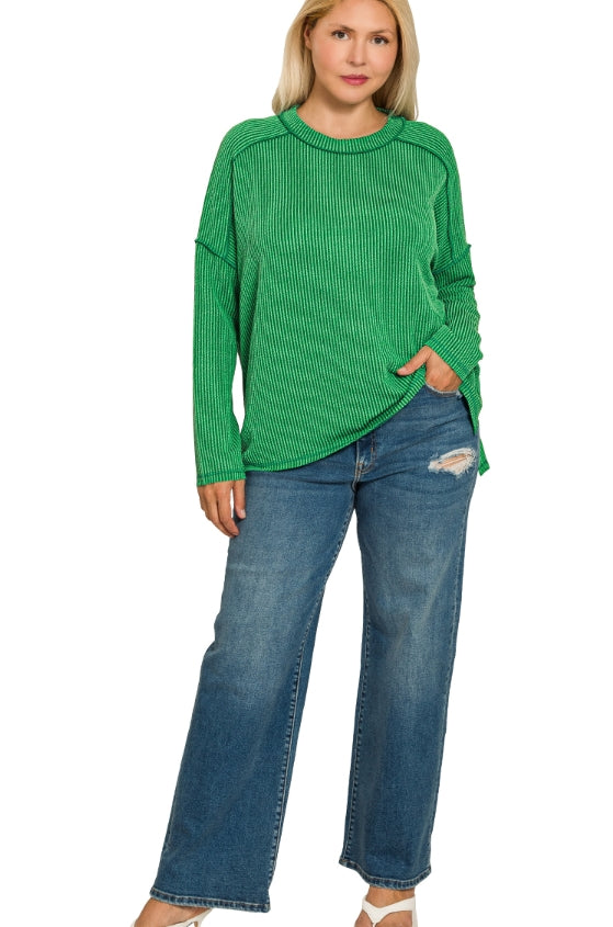 Green Ribbed Long Sleeve