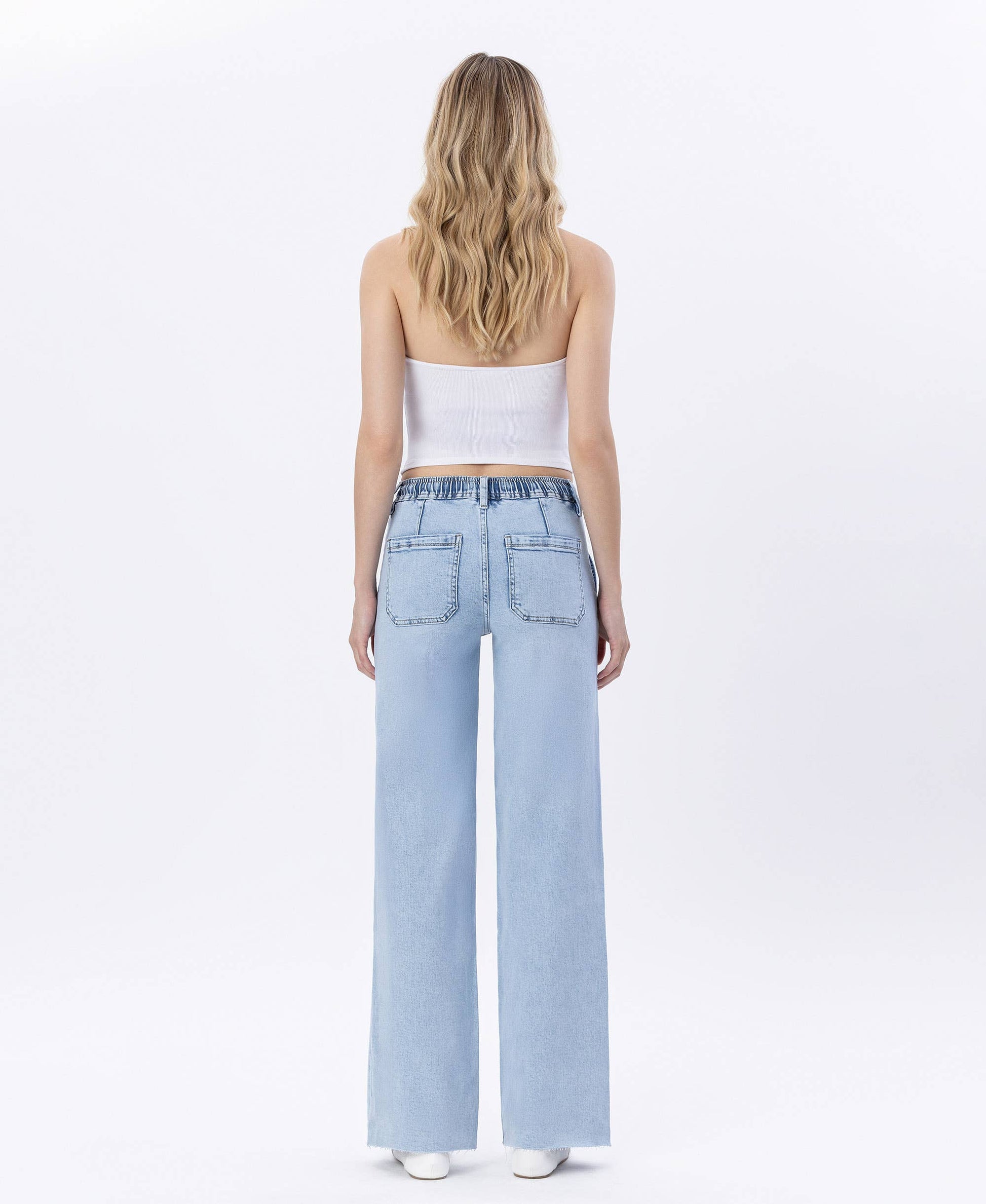 HIGH RISE DRAWSTRING WAISTBAND WIDE LEG JEANS