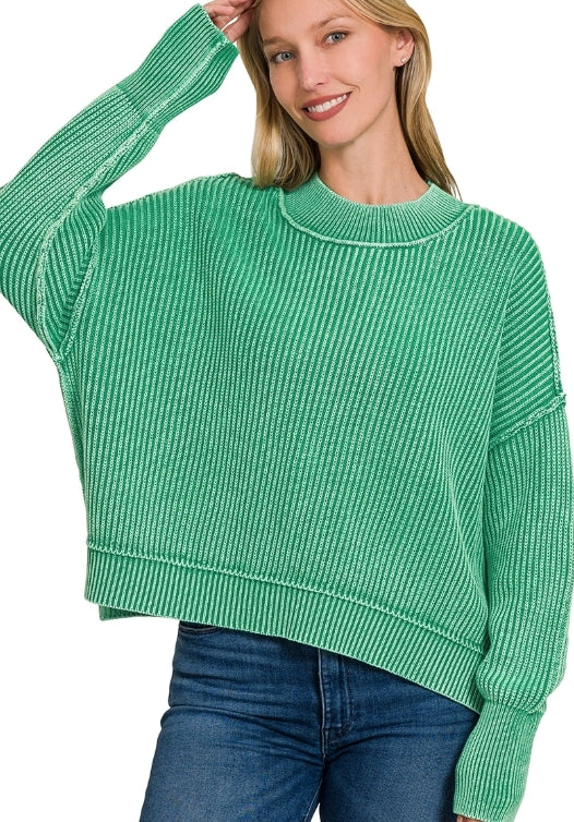 WASHED SIDE SLIT OVERSIZED CROPPED SWEATER