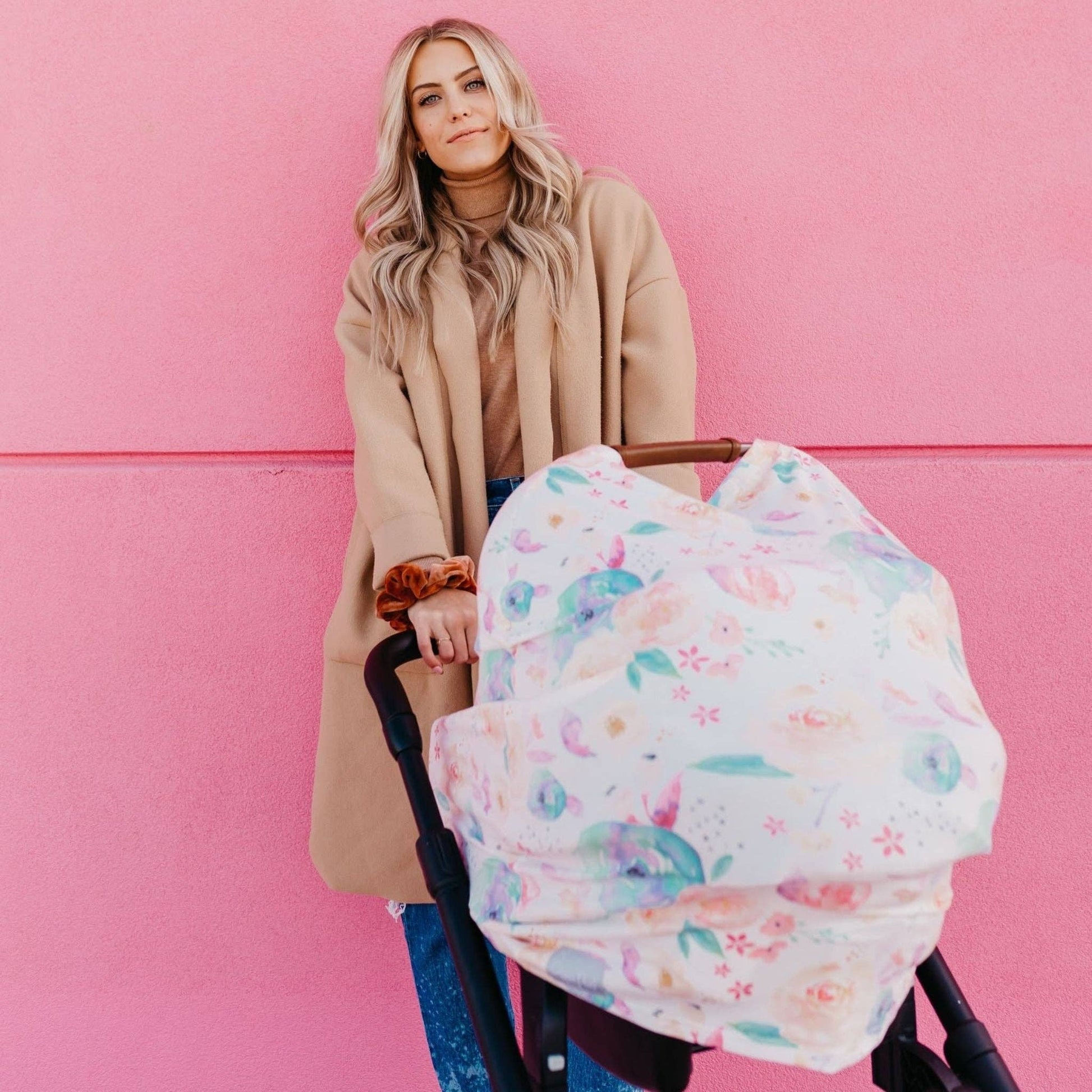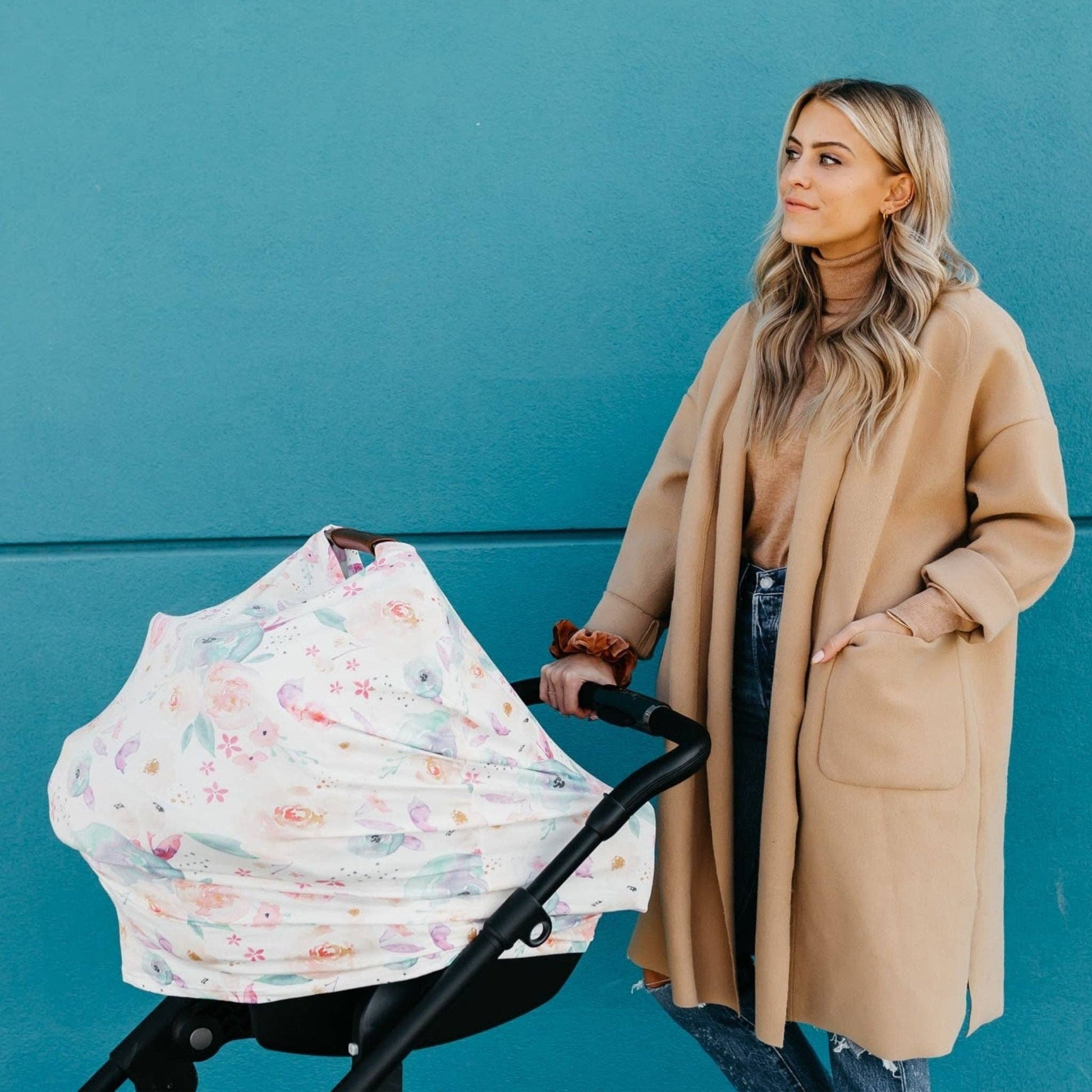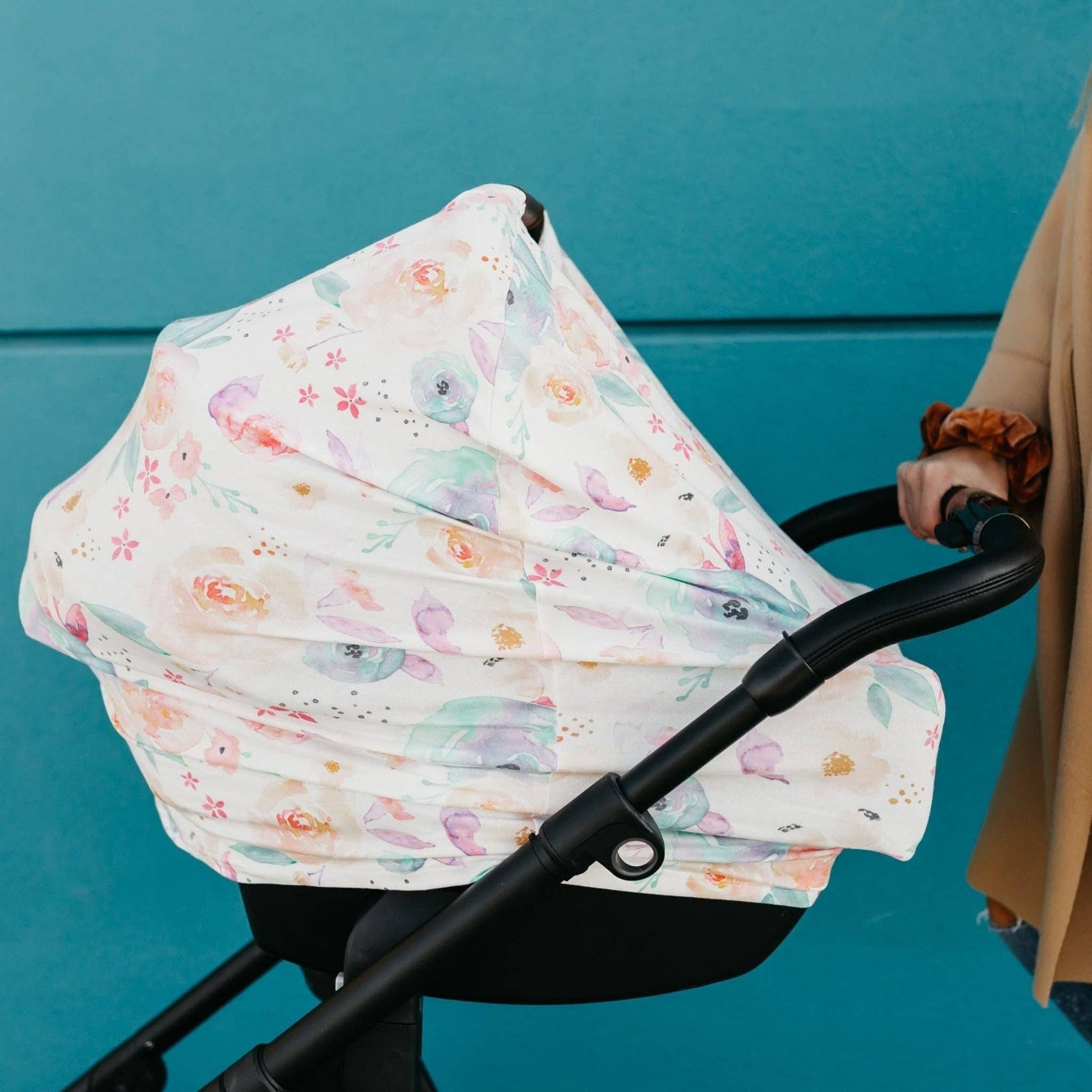 * Stretchy fabric fits most all car seats, shopping carts, high chairs and nursing mothers. It can also be a trendy infinity scarf!