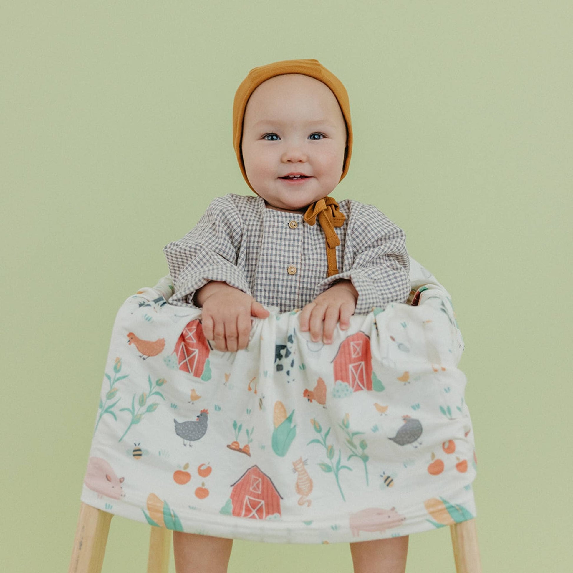 * Stretchy fabric fits most all car seats, shopping carts, high chairs and nursing mothers. It can also be a trendy infinity scarf!