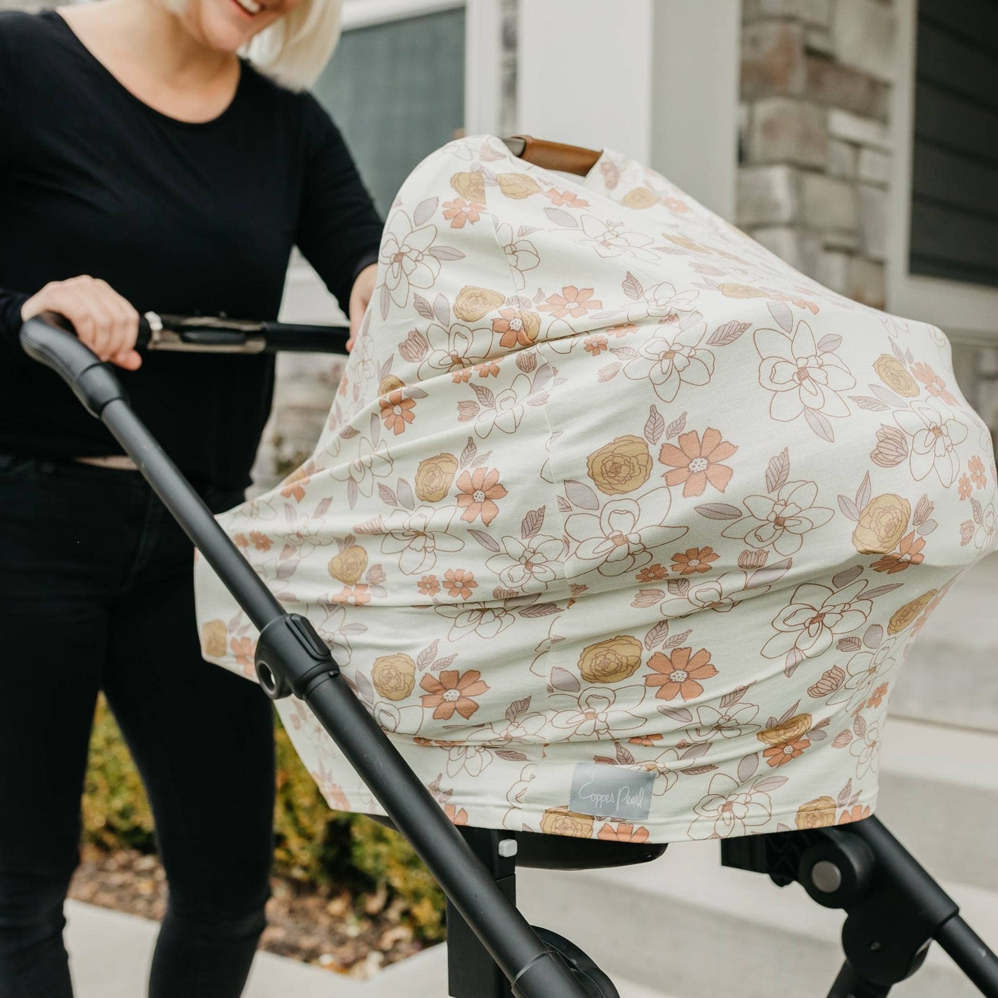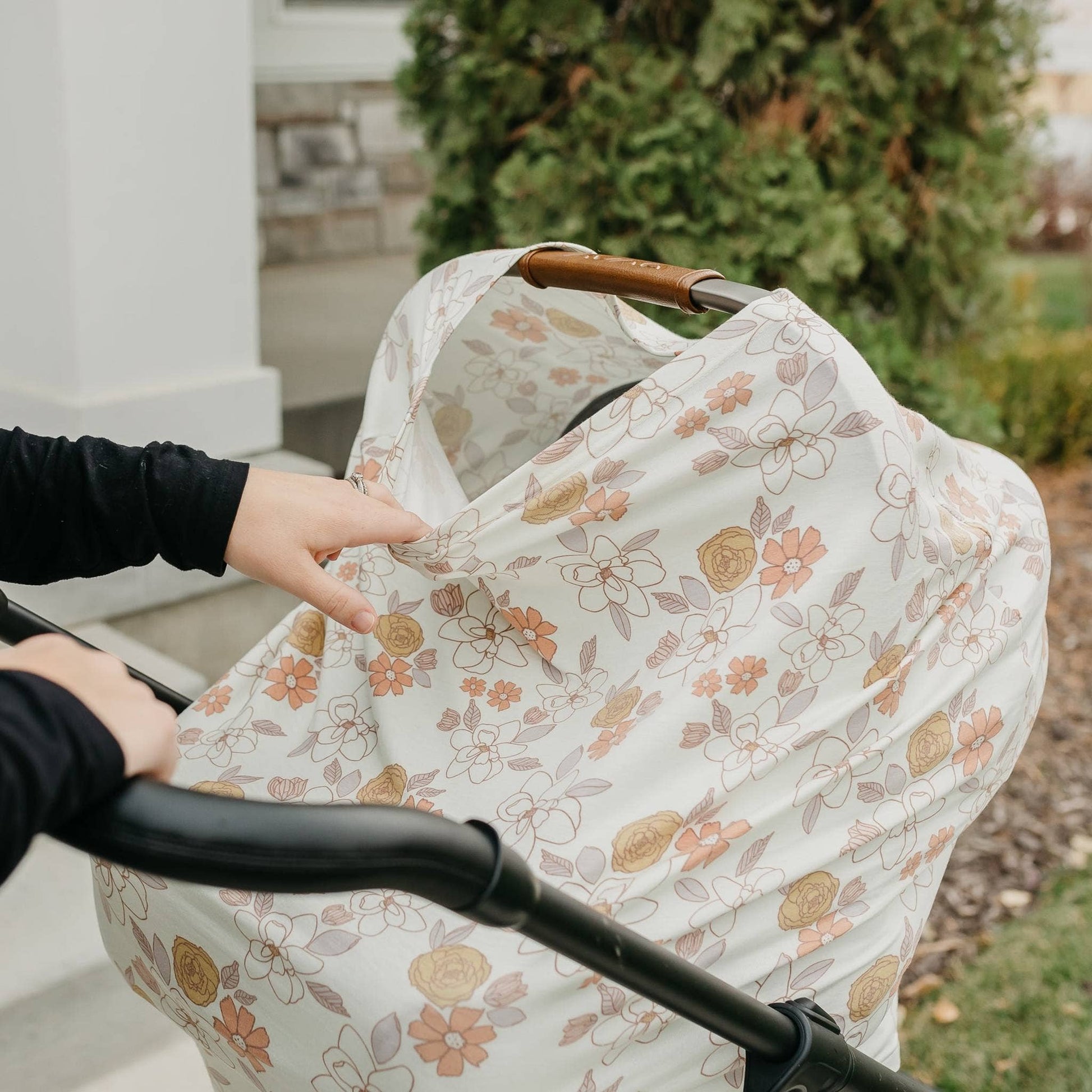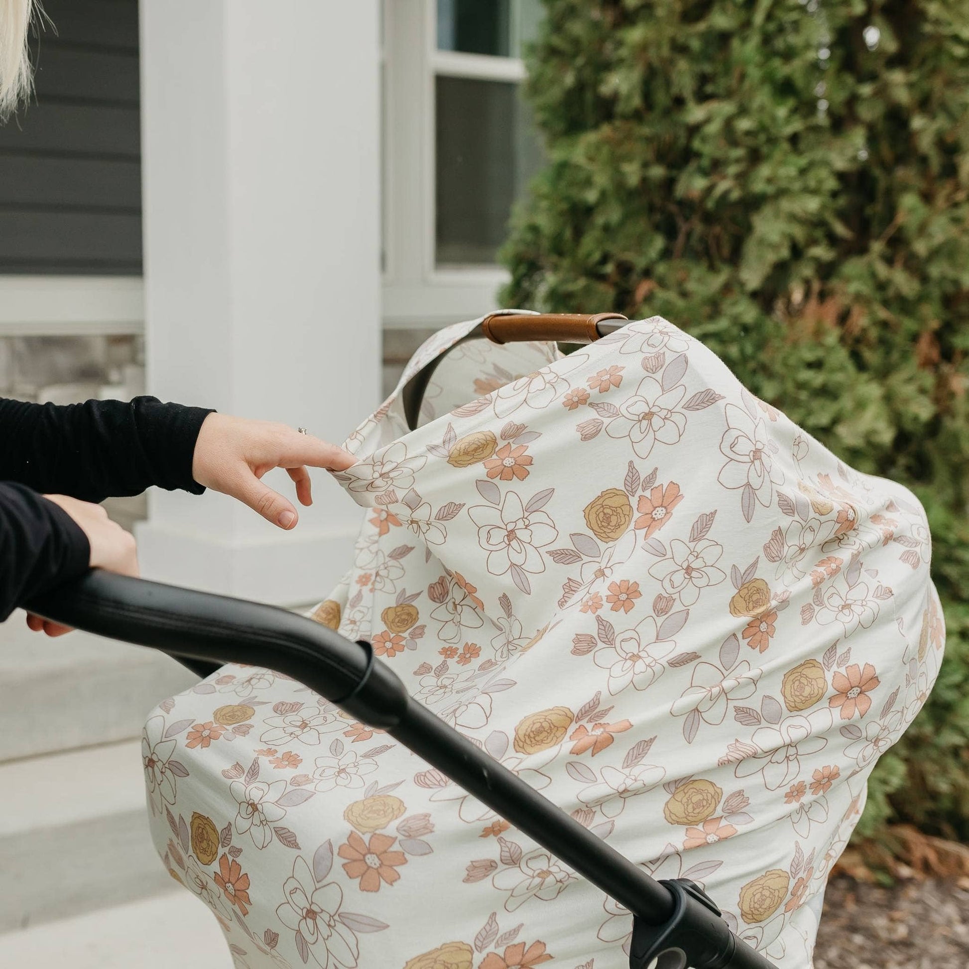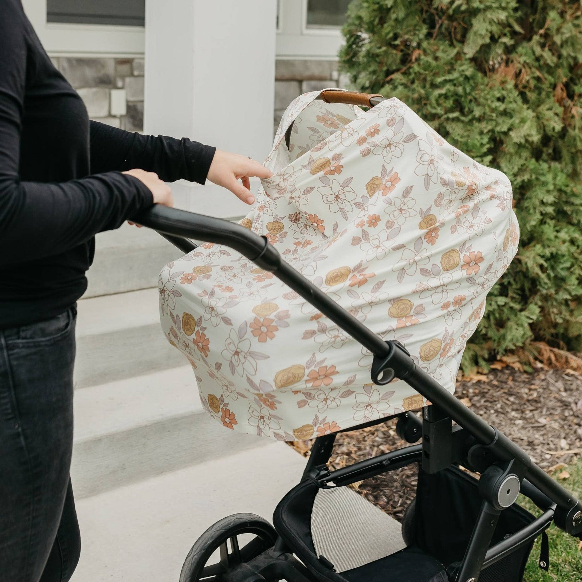* Stretchy fabric fits most all car seats, shopping carts, high chairs and nursing mothers. It can also be a trendy infinity scarf!