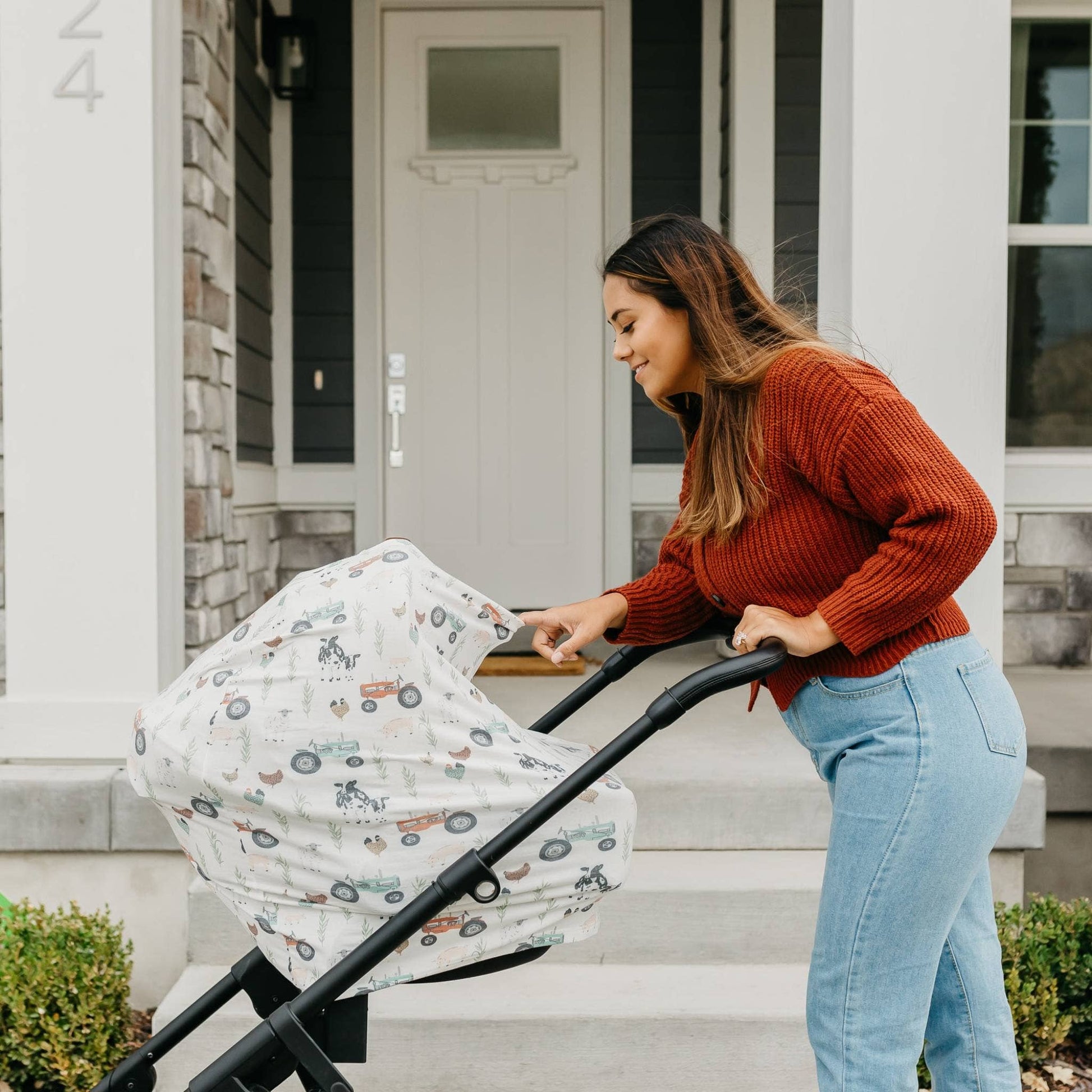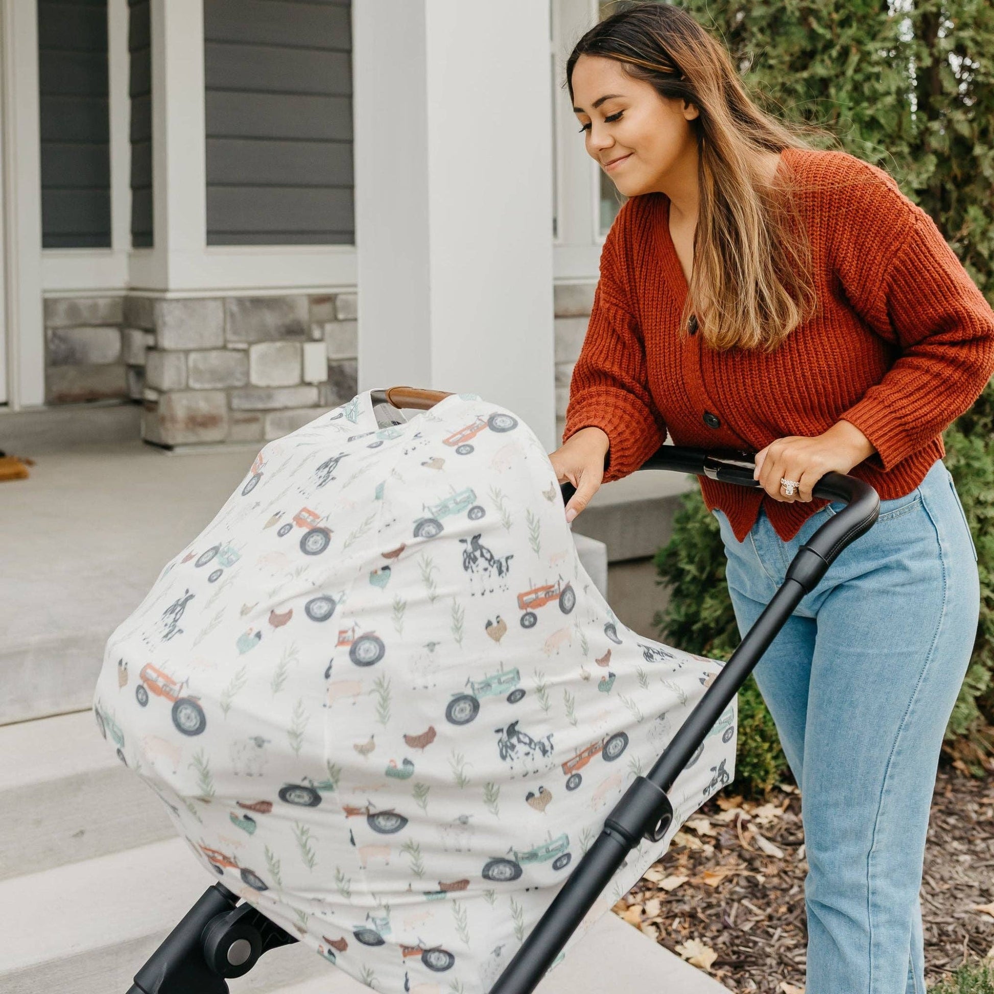 * Stretchy fabric fits most all car seats, shopping carts, high chairs and nursing mothers. It can also be a trendy infinity scarf!