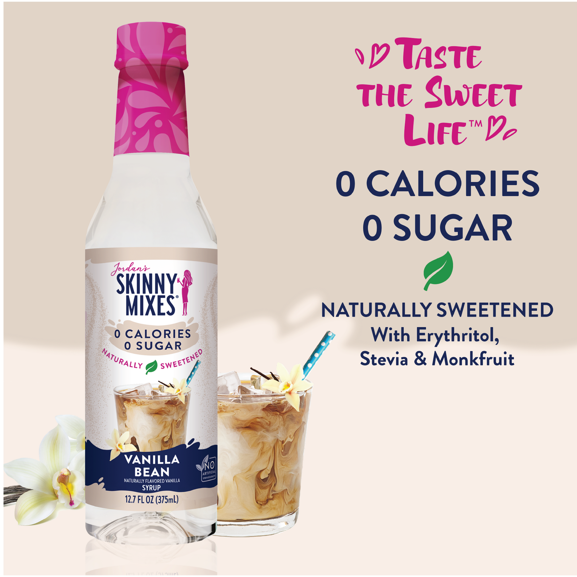 You asked - we got to work! Our NEW, Naturally Sweetened Vanilla Bean syrup provides all the smooth and buttery flavor of classic vanilla, but NONE of the calories or sugar. Naturally sweetened with stevia, monk fruit, and erythritol. More natural, more flavor, 0 calories, 0 sugar.