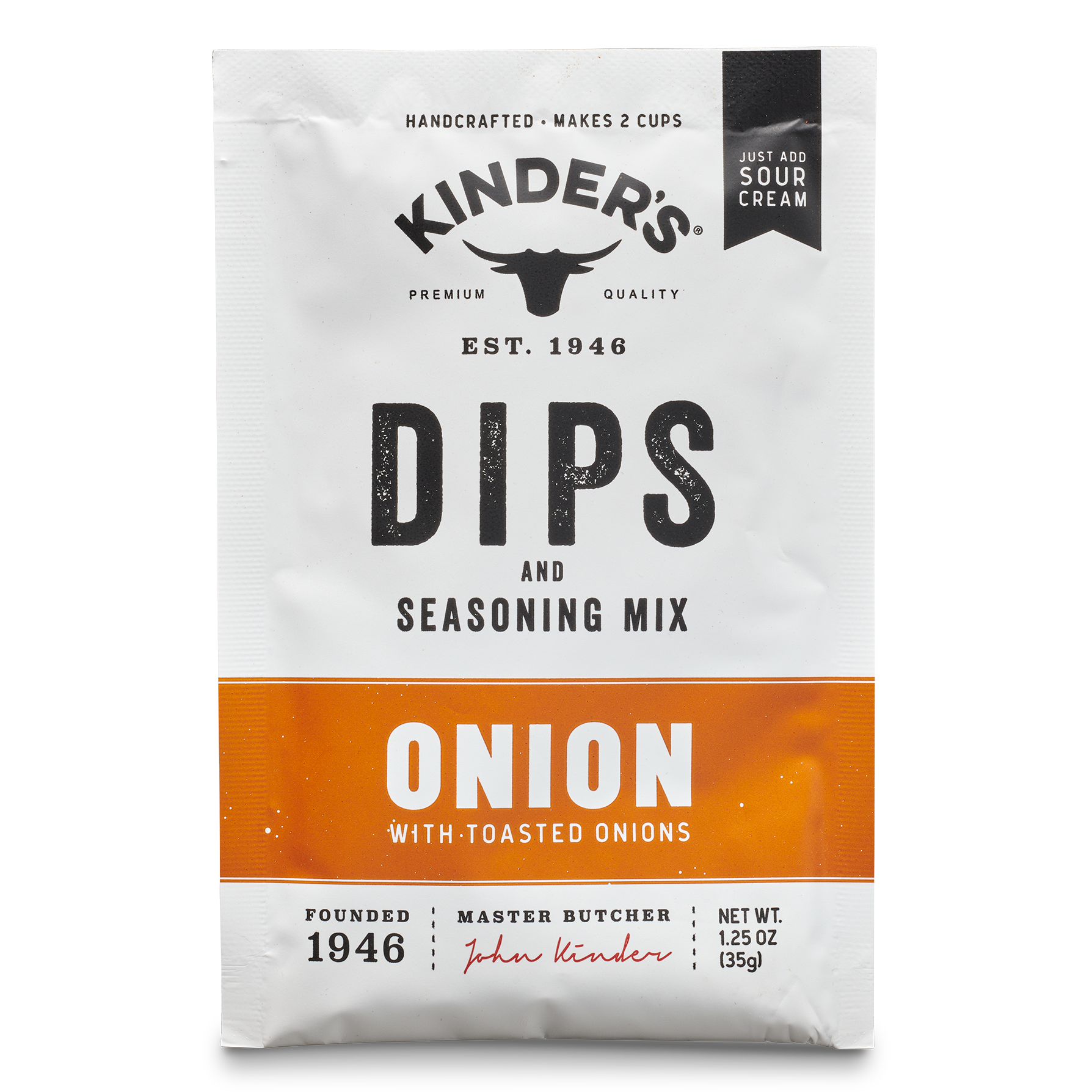 Onion with toasted sweet onions. No artificial ingredients. Premium quality. Founded 1946. Master Butcher John Kinder.