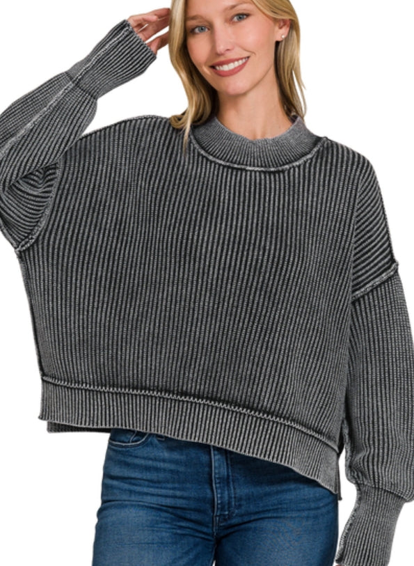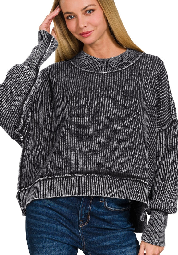WASHED SIDE SLIT OVERSIZED CROPPED SWEATER