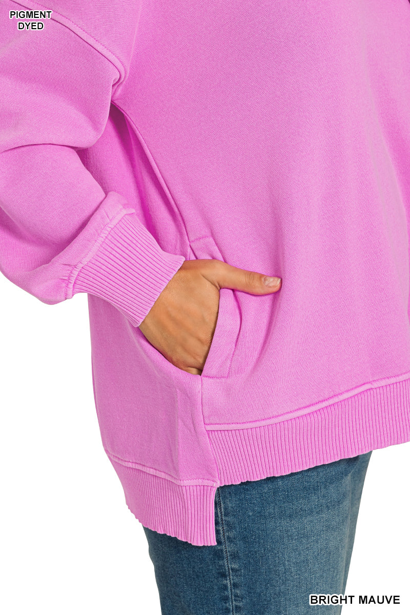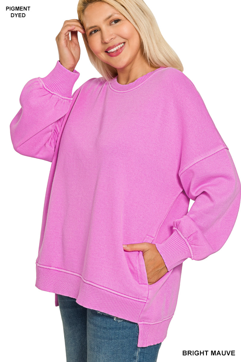 PLUS PIGMENT DYE FLEECE HI-LOW HEM PULLOVER WITH POCKET