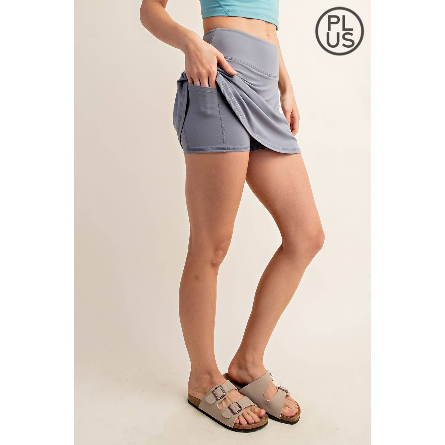 PLUS SIZE BUTTER SKORT: Rhino Grey
