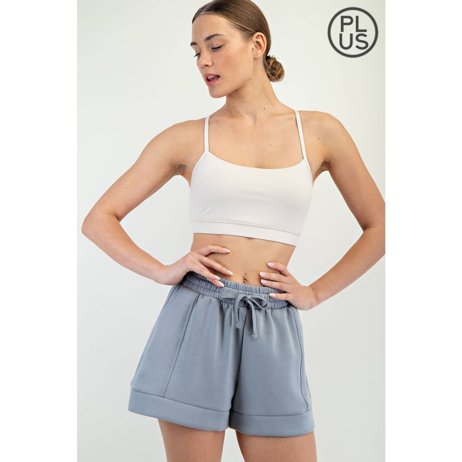 - Style No.: P6308PL-C Designed with a fashionable front pleat and equipped with side pockets, these shorts add a touch of sophistication to your everyday look. Crafted from luxurious cooling scuba fabric, they provide a premium feel and ensure comfort throughout the day. Ideal for lounging or casual outings, these shorts offer a chic style that effortlessly complements matching tops. Embrace both fashion and ease with this versatile piece, perfect for transitioning from laid-back moments to stylish casual outings. Features: - Plus/Curvy Size - Modal Polyester Spandex Fabric - Scuba Fabric - Easy Pull-On Shorts - Adjustable Drawstring - Elastic Waist Band - Side Pockets - Side Front Pleat Detail