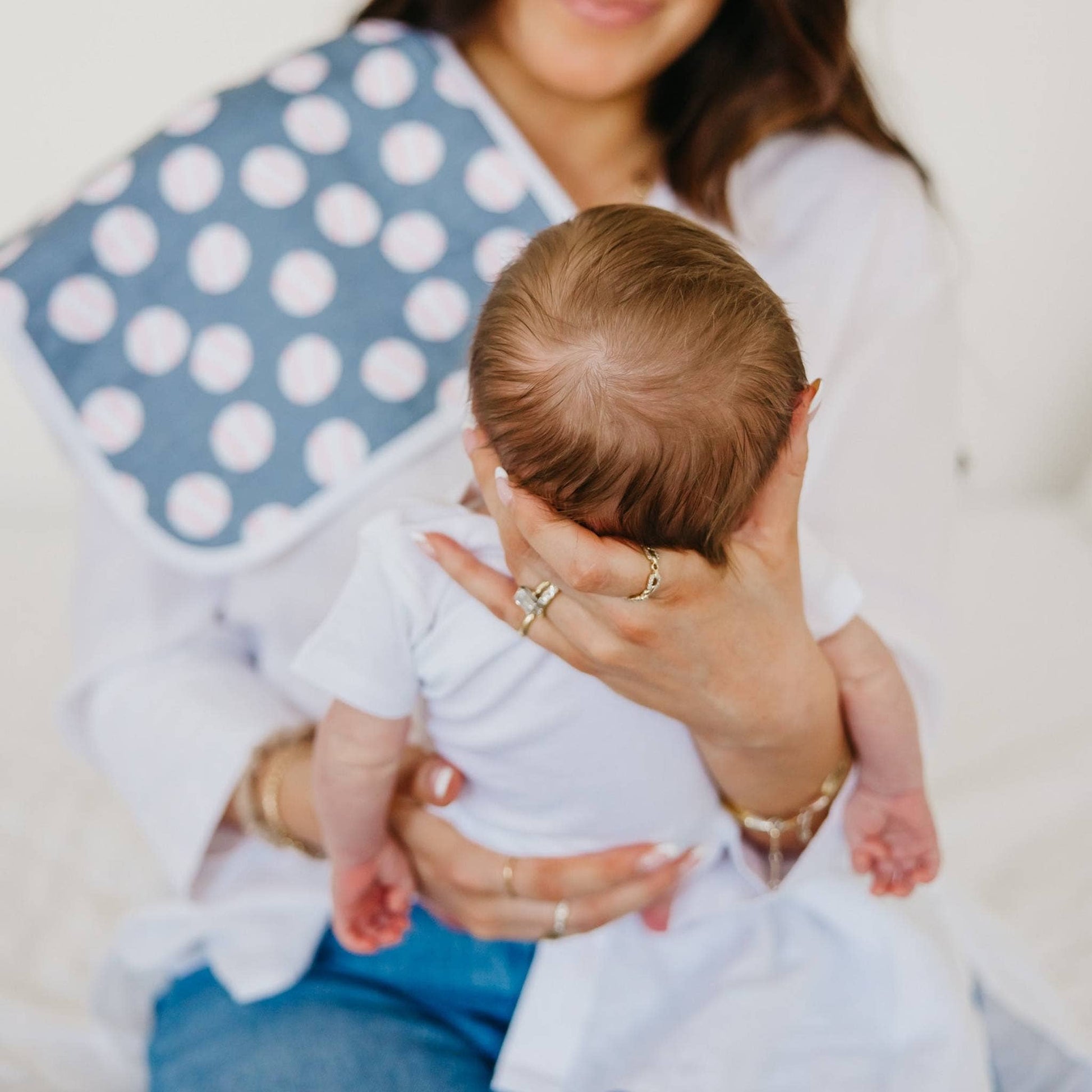 * Our burp cloths are designed with baby’s comfort in mind. That’s why we created them with 100% ultra-soft cotton layers on the front (patterned) and back (plain white). You can feel confident that baby will feel cozy against your shoulder while burping.
