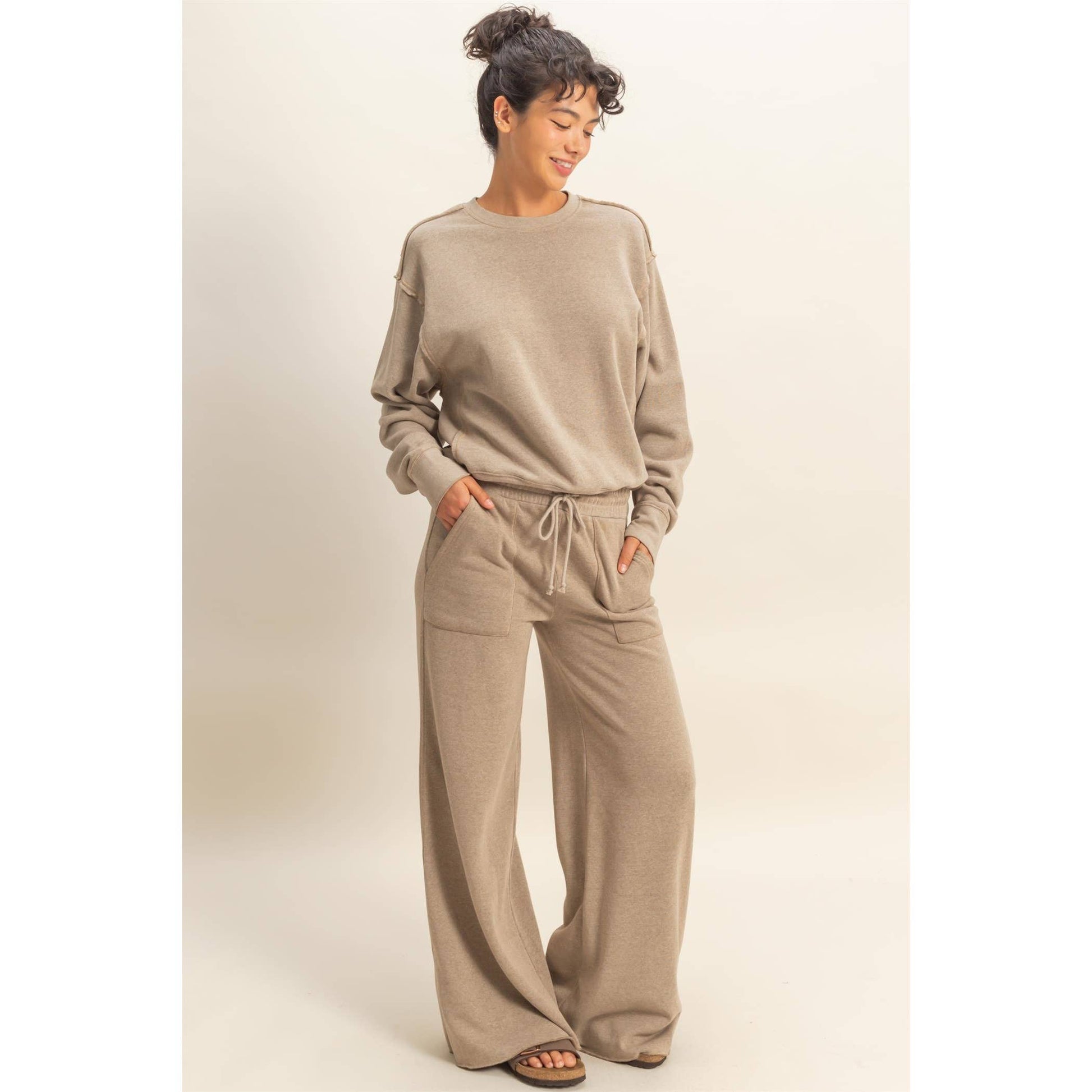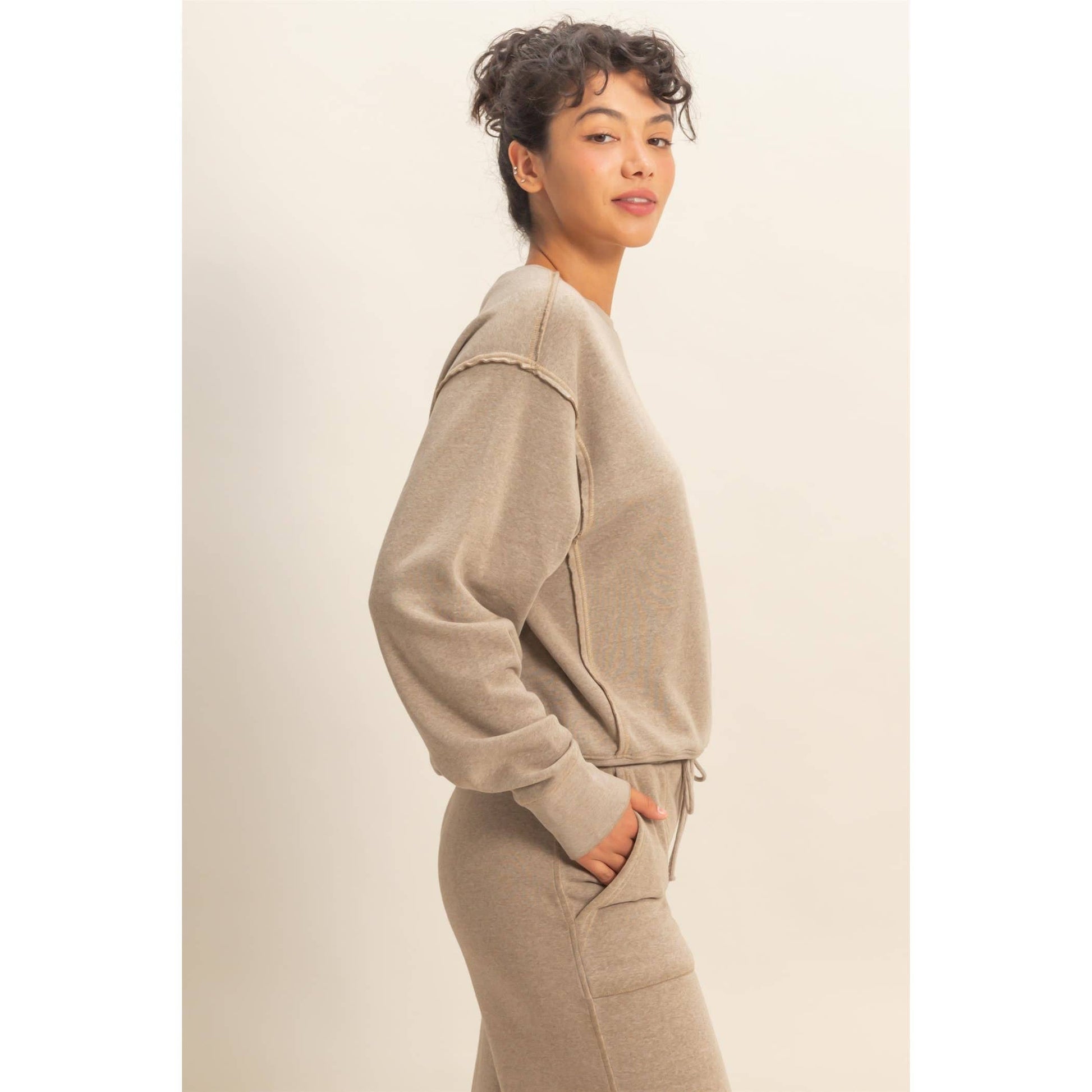 Raw Edge Sweatshirt: MOCHA