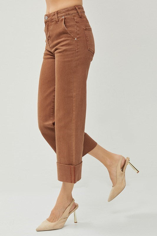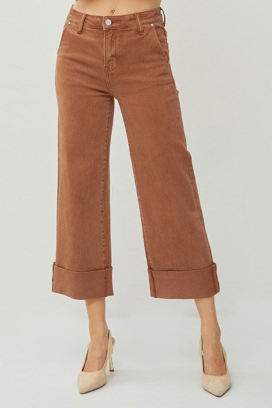 HIGH RISE WIDE LEG WITH CUFFED PANTS