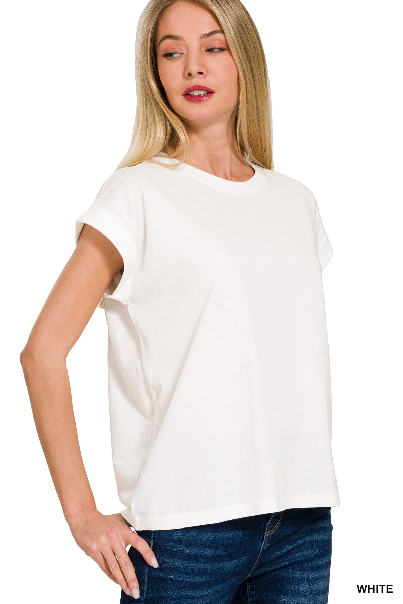 ROUND NECK FOLDED SHORT SLEEVE T-SHIRT