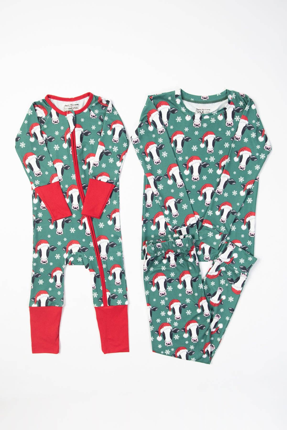 Get your little ones ready for cozy holiday fun with our Santa Cows & Snowflakes Toddler/Youth Pajama Set. Featuring long sleeves and pants crafted from buttery soft, lightweight poly-lycra fabric, these pajamas keep kids comfy all night. The playful Santa cows and snowflakes design adds festive cheer, perfect for matching the whole family in style this Christmas.
