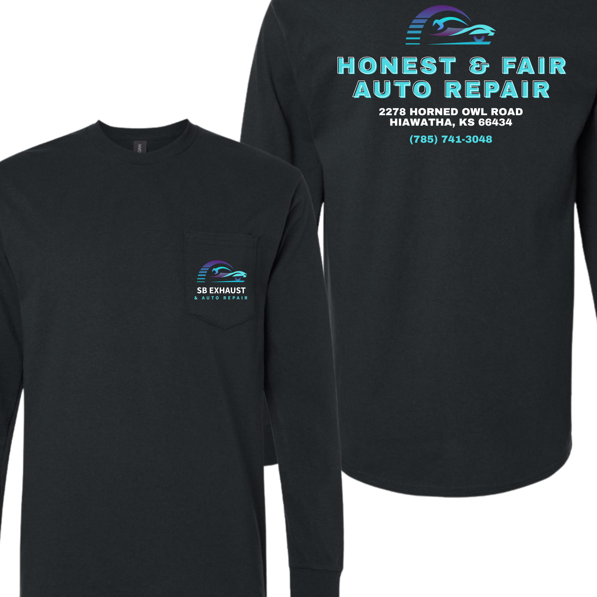 SB Exhaust Auto Repair Long Sleeve Pocket Tees