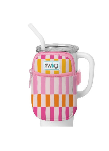 Our Mega Mug Pouch is the go-to drinkware accessory for any hands-free outing! Whether for school drop-offs, racket clubs, the gym, or running errands, this zippered pouch stores all your essentials. Keep your ID, cards, hair ties, or any other small essentials secured, and leave your purse at home.