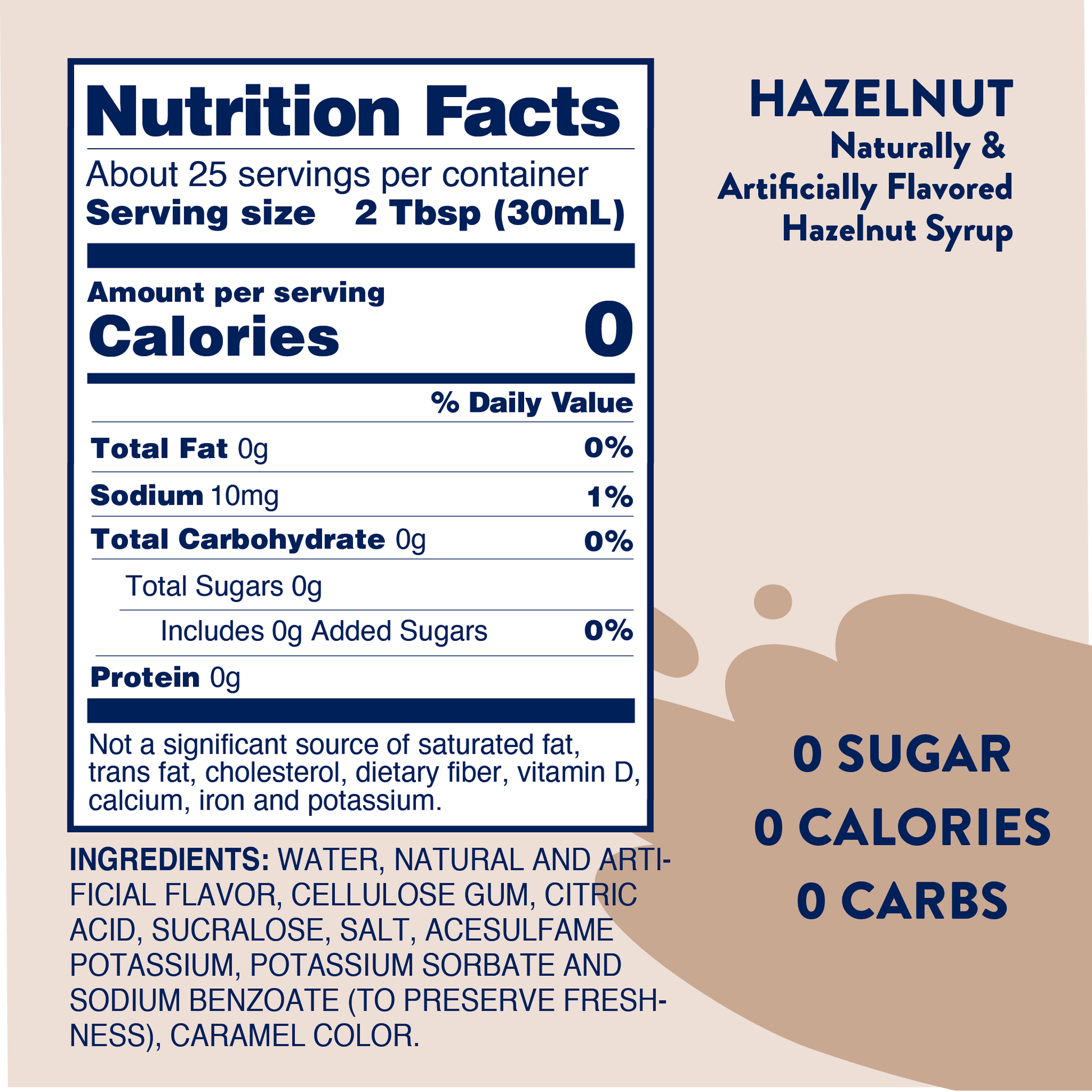 The taste and aroma of hazelnut will sweeten your coffee, cocoa, or lattes. Sit back and enjoy the distinctive flavor. Add guilt-free flavor to coffees, lattes, protein shakes, smoothies, baking, milkshakes, oatmeal, or just about anything.
