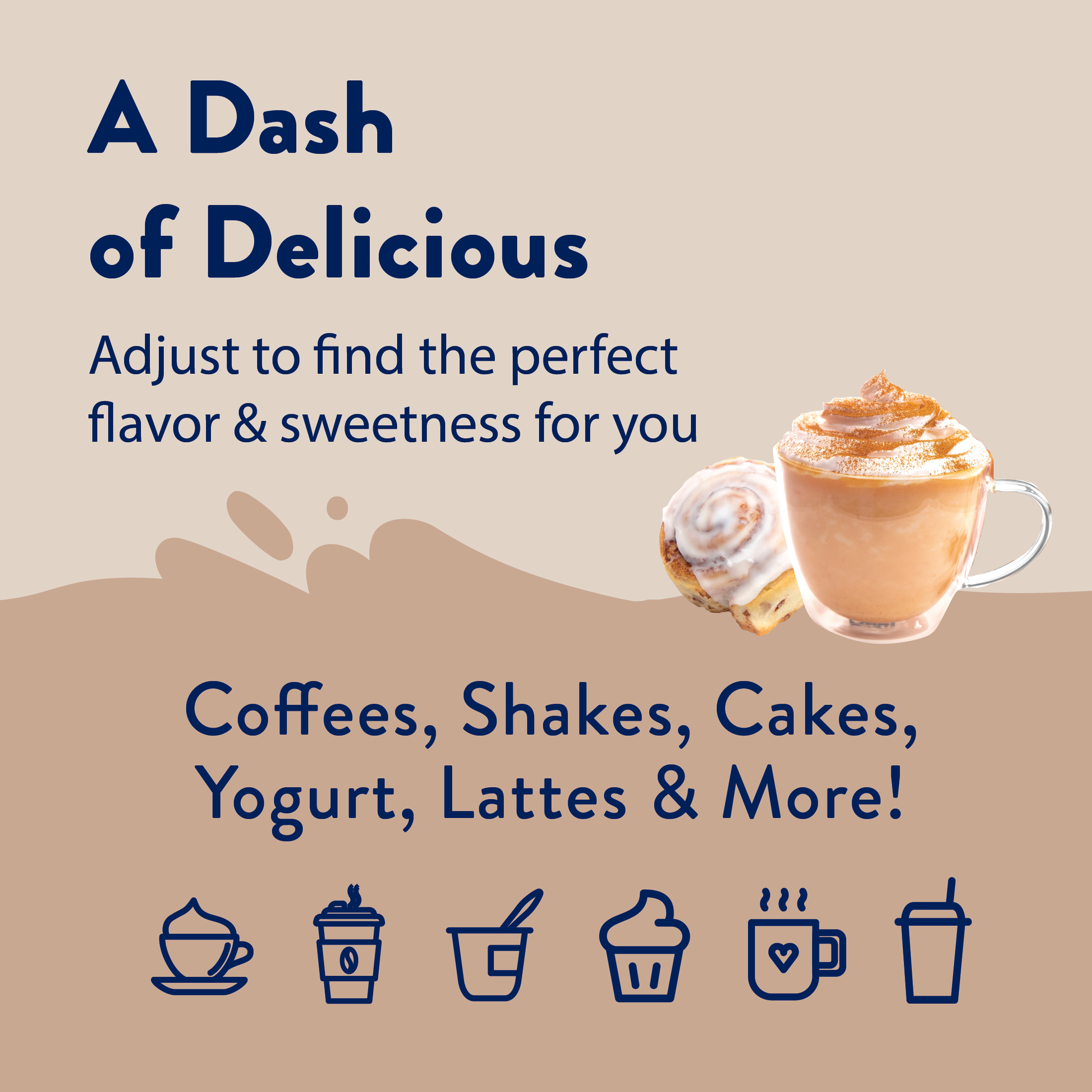 Your senses will be delighted with the heavenly, nostalgic taste of an iced cinnamon roll. This Dessert Collection Syrup tastes just like a light, fluffy, melt in your mouth iced cinnamon roll. Your morning coffee will taste like an indulgent treat, but without the unwanted calories. Add guilt-free flavor to coffees, lattes, tea, protein shakes, smoothies, baking, oatmeal, or just about anything.
