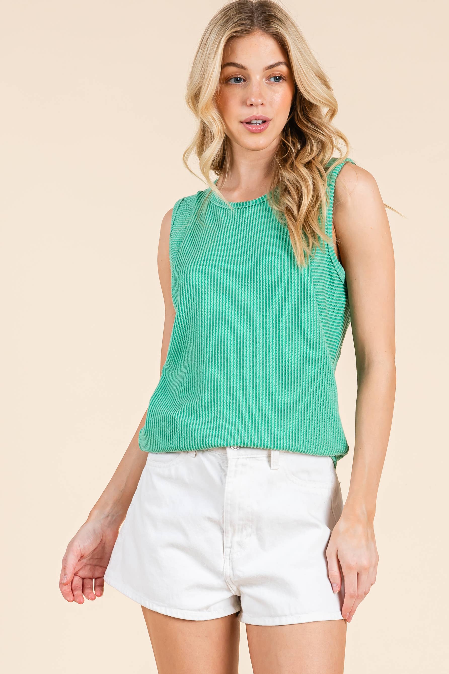 SLEEVELESS RIBBED KNIT TANK TOP: Green