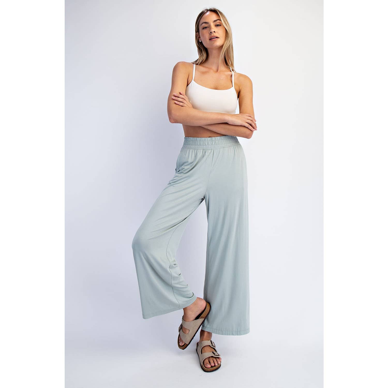 MODAL CROPPED WIDE LEG PANTS