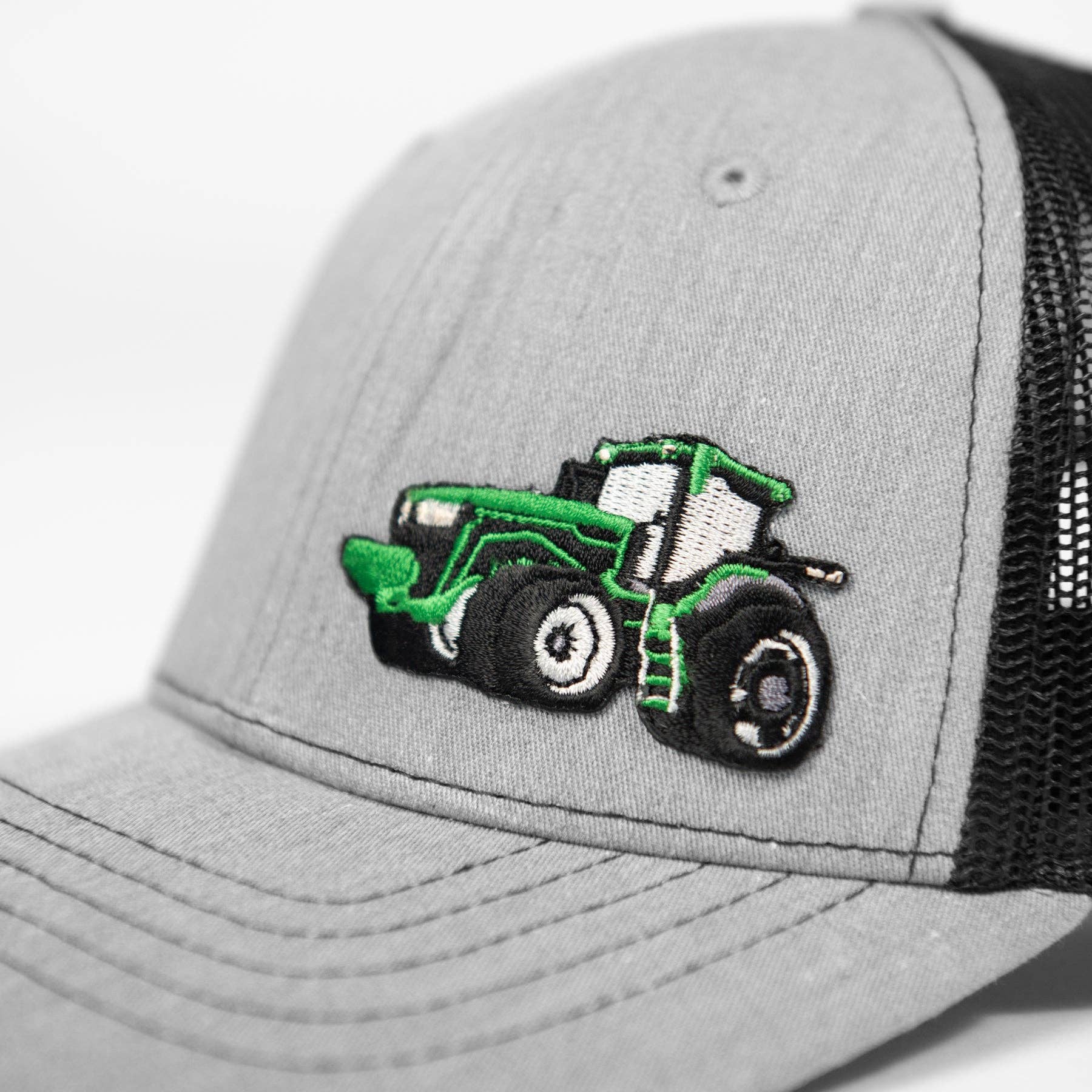 Get your little one ready for some farm adventures with our Big Green Tractor Youth Hat. Featuring a fun tractor patch, this heather grey and black hat is perfect for any young farmhand. Keep them cool and stylish on hot summer days while showing off their love for tractors. Available now!