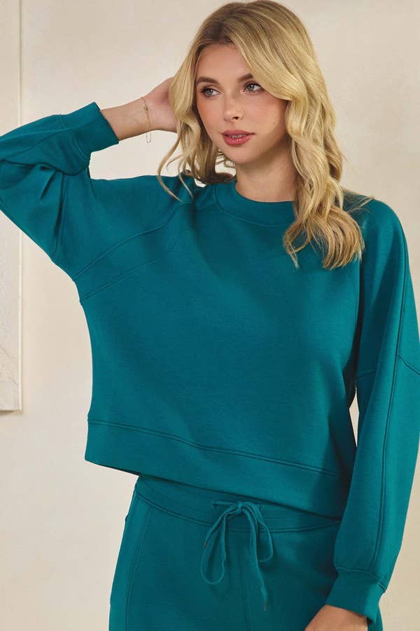 Don't miss out on this comfortable and versatile Top with full length sleeves and a banded waistline. Made with the softest, lightweight scuba fabric you'll ever lay hands on. Perfect for any occasion, whether it be running errands, lounging around, or a relaxing autumn night out. Dress it up or down, the world's your oyster!, , -Simple casual design, -Relaxed silhouette allows for easy movement, -Simple pullover style, -Scuba fabric, , -Imported