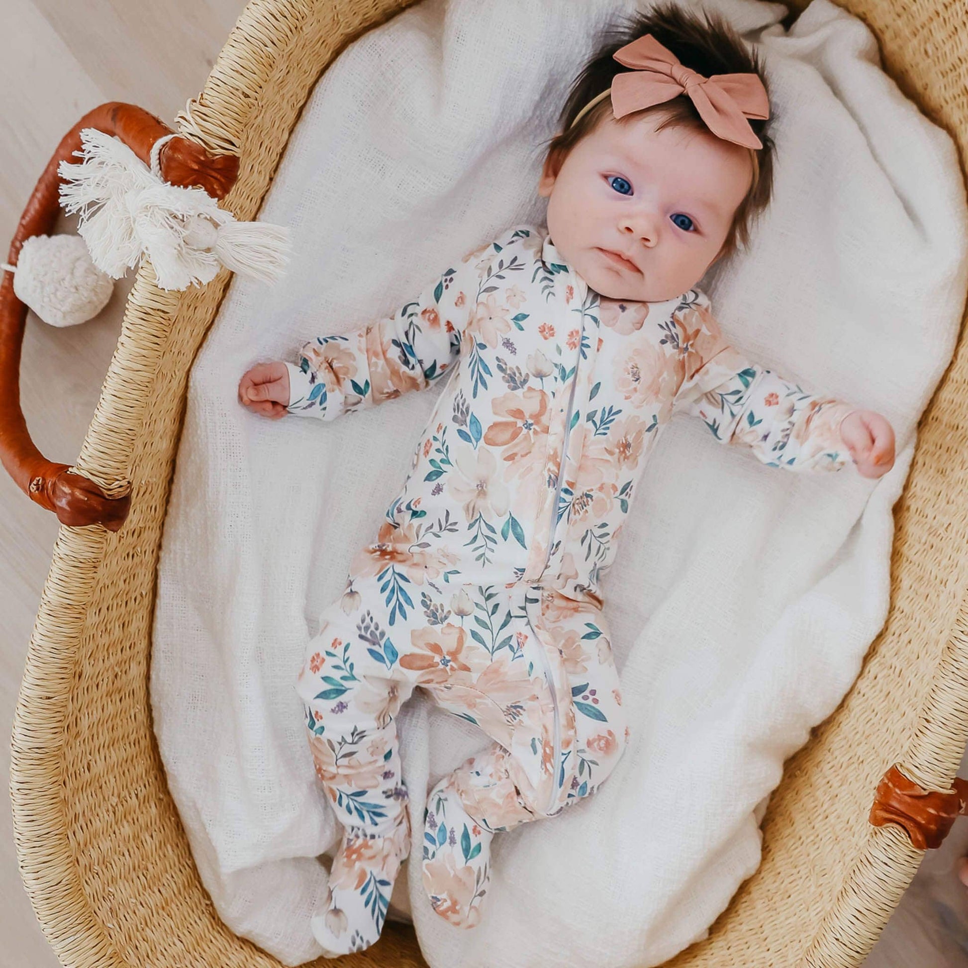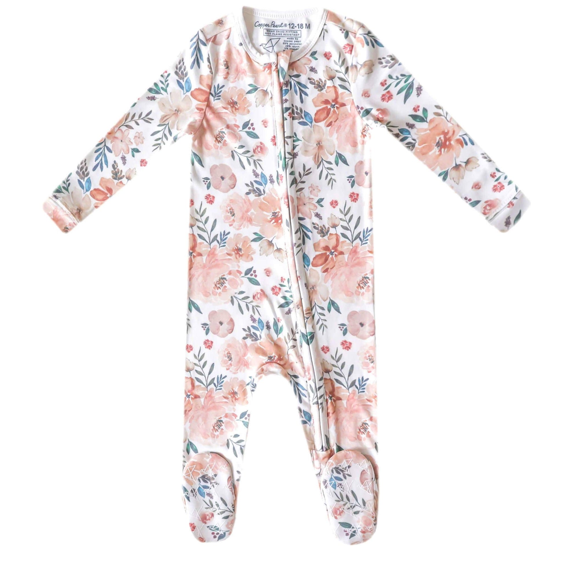 We’ve dreamed up the perfect footie pajamas, featuring buttery soft fabric, a tag-free design, and a two-way zipper for easy changing. Pick your favorite Copper Pearl print for a stylish night’s sleep!